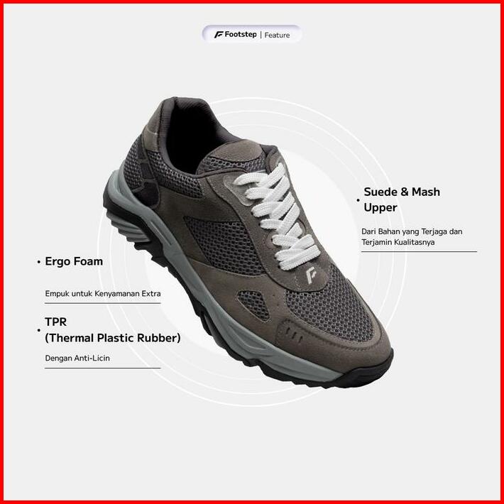 Footstep Footwear Sepatu Pria Sneakers Heavy Max Grey Original Shoes Casual Snekers Kerja Running Kasual Sport Hitam Bla