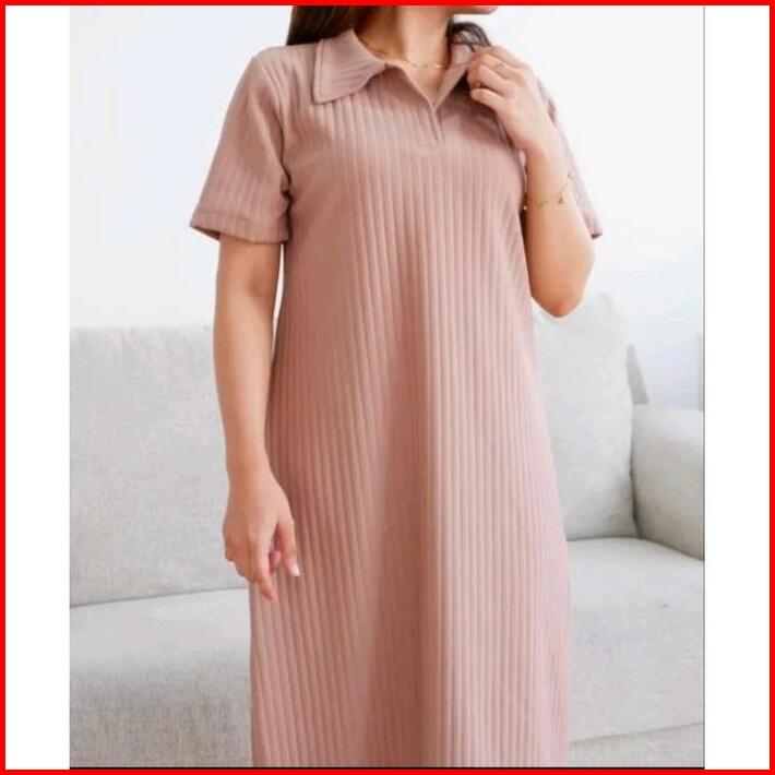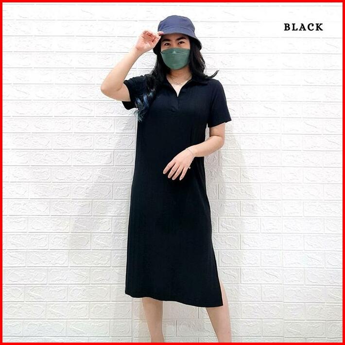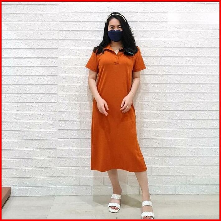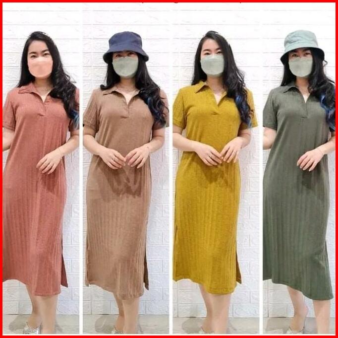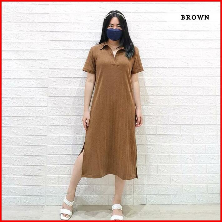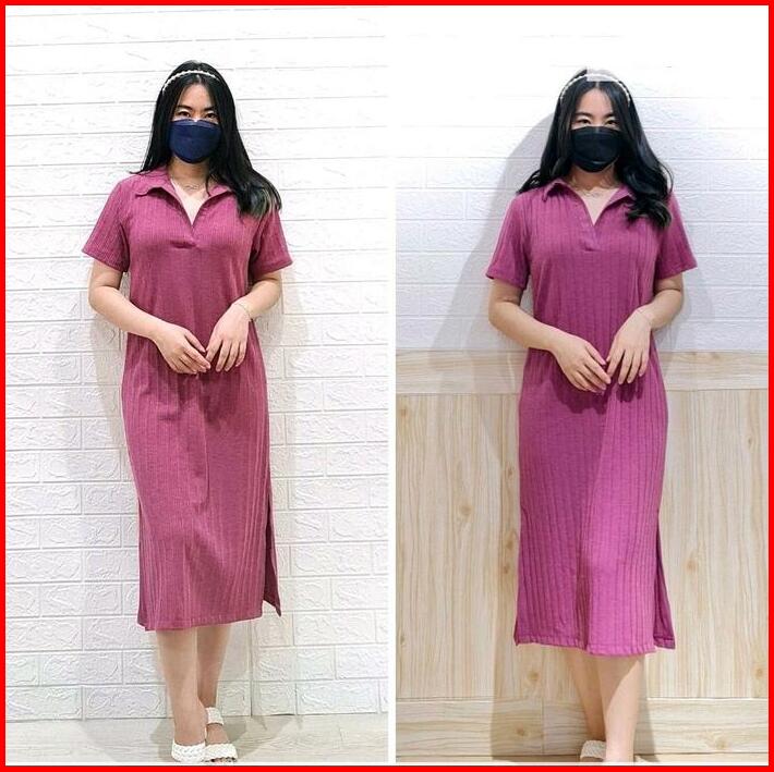 Amber Gamis Midi Slit Dress Rajut Hornet Knit Casual Kancing Panjang Belah Samping Wanita Kerah