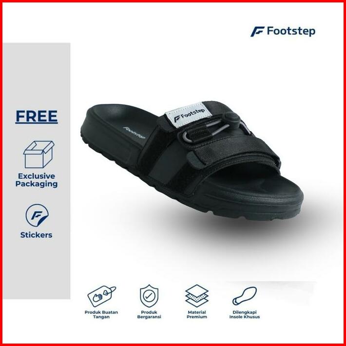 Footstep Footwear Sandal Pria Slide Foxi Black Grey Original Sendal Jepit
