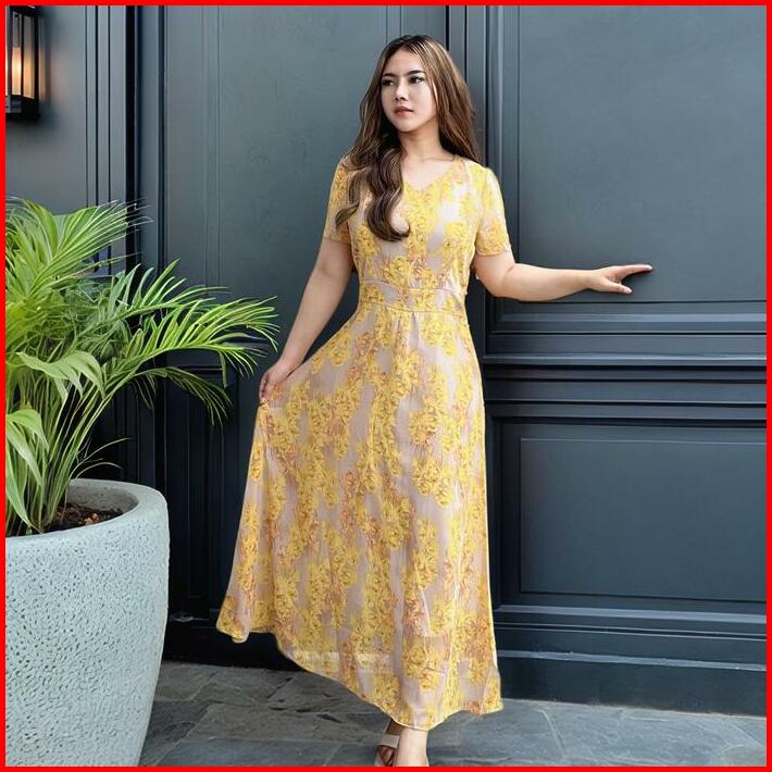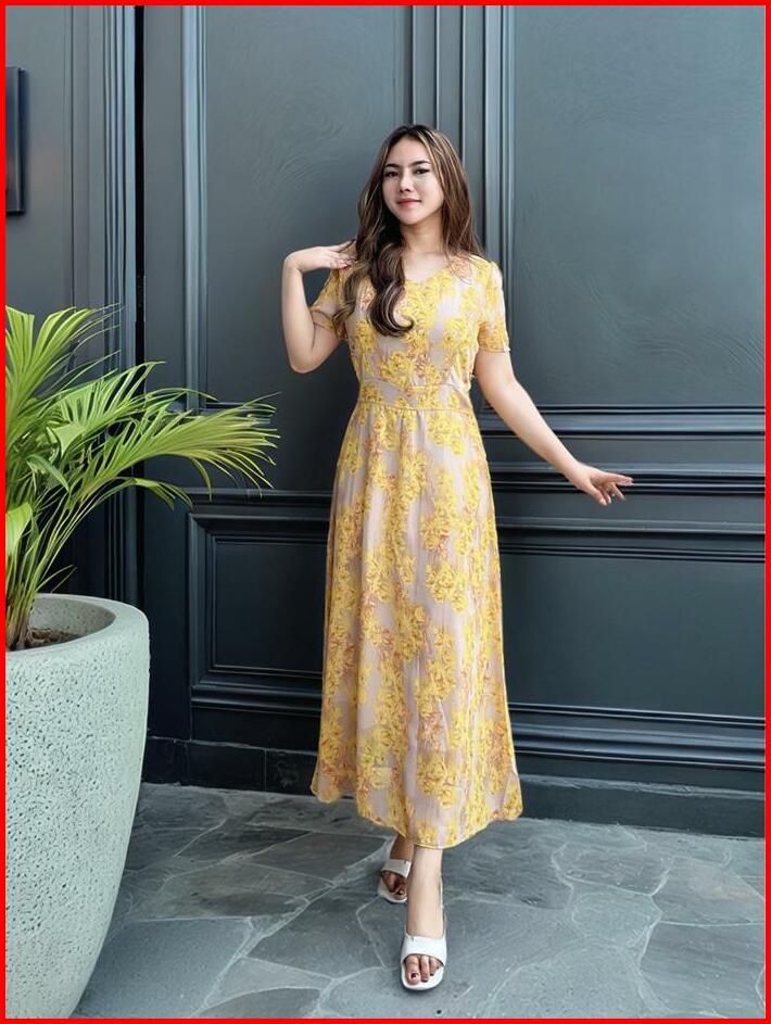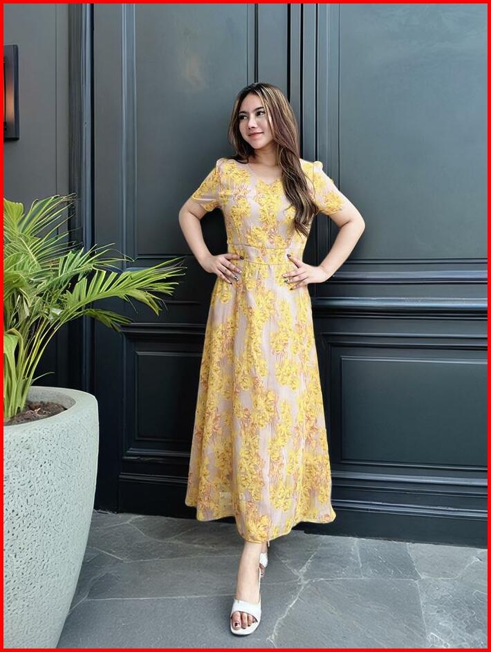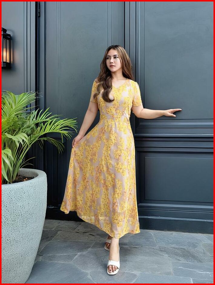 Midi Dress Dress Korea Vintage Dress Brokat Terlihat Mewah Bordir Casual Gaun Panjang Dress Sifon Simple Bunga Pesta Wan