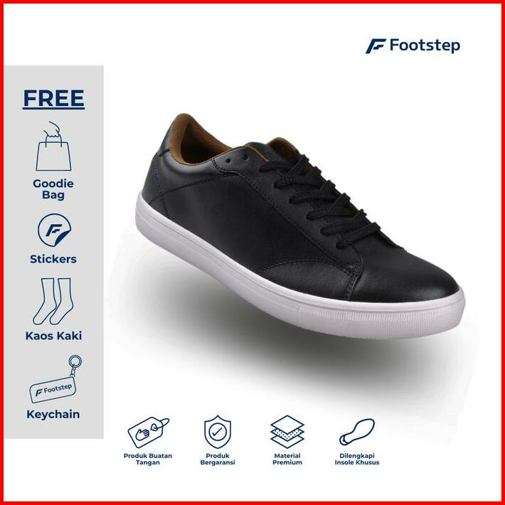 Sepatu Cowok Footstep Smith Black Casual Shoes Pria Sneakers Snekers