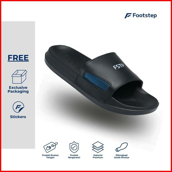 Sendal Cowok Footstep Dazzle Navy Slide Sandal Shoes Pria Selop Karet