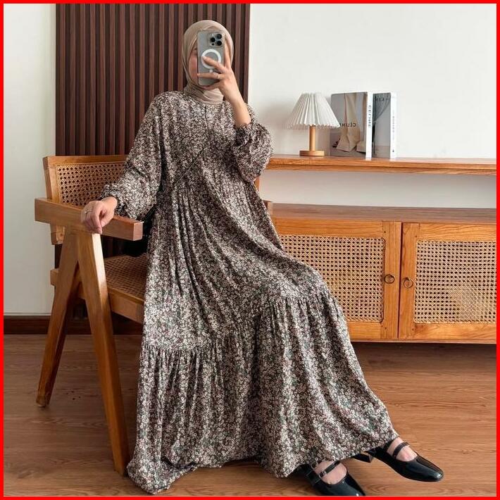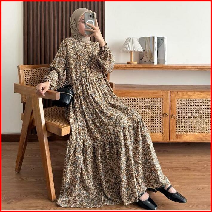 Heeda Midi Dress By Ziya Gamis Rayon Premium Kancing Muslim Samping Wanita Panjang Formal Mewah Nyaman Syari Kain Menyus