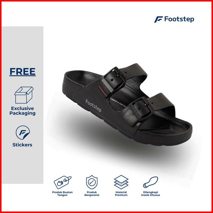 Sendal Cowok Footstep Bona Black Red Slide Sandal Pria