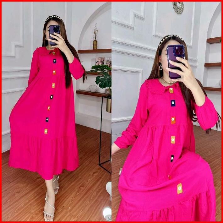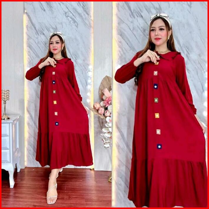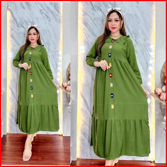 Gamis Midi Polos Busui Kancing Ld 110 Dress Rayon Casual Wanita