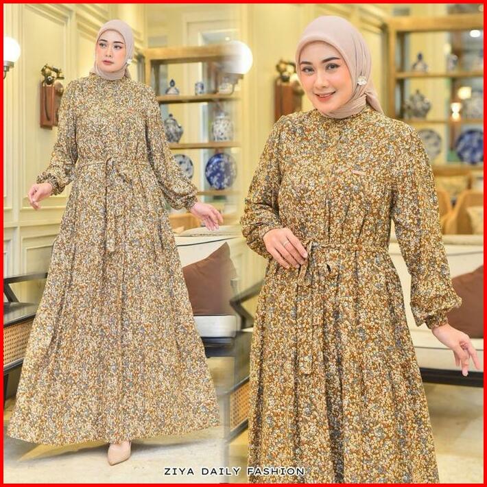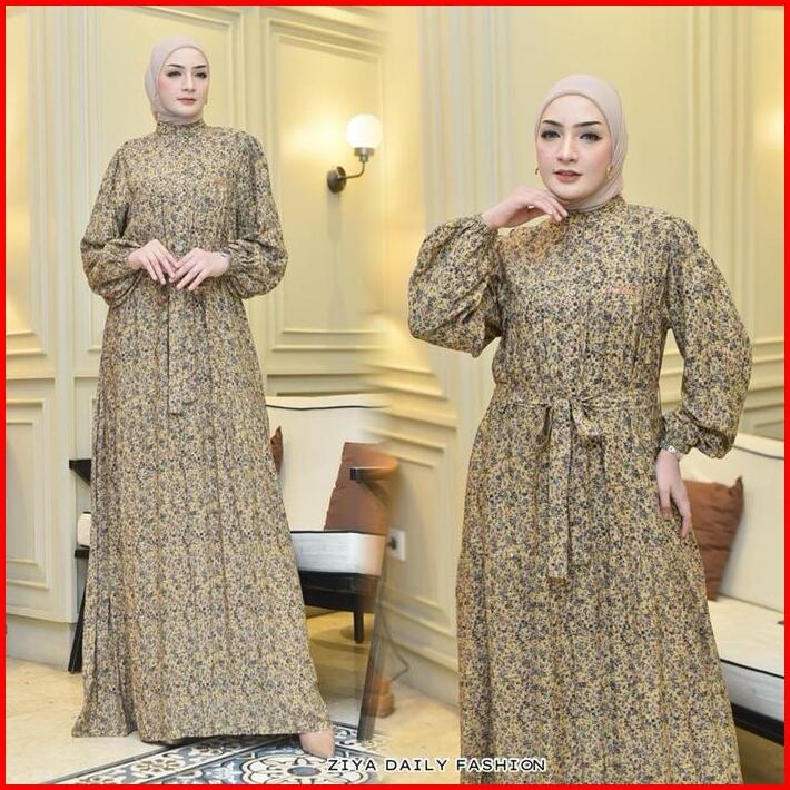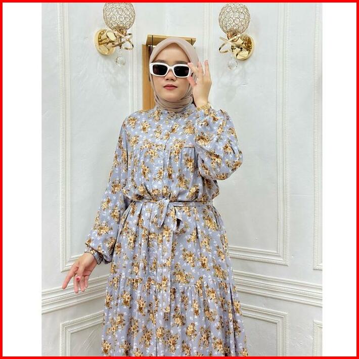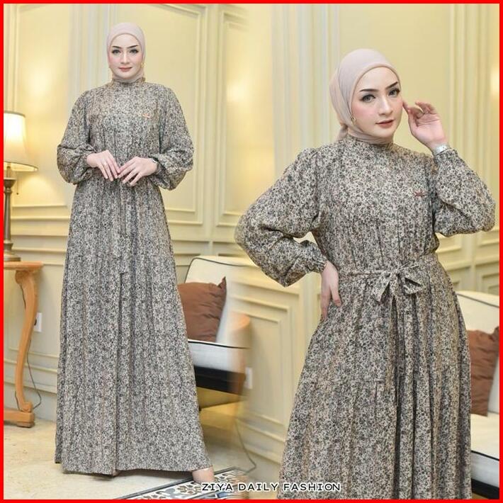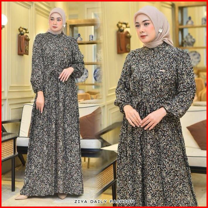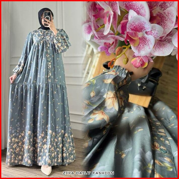 Noora Dress By Ziya Gamis Rayon Premium Busui Friendly Nyaman Muslim Kancing Flowy Balon Panjang Katun Motif Midi Kotak