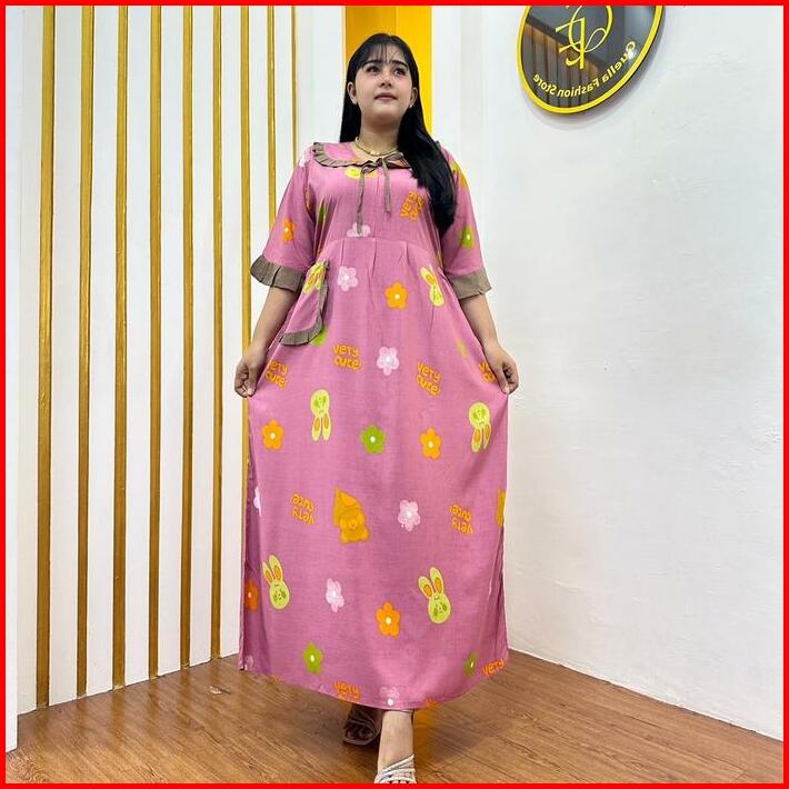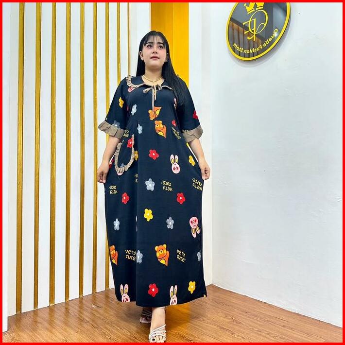 Midi Dress Amanda Motif Karakter Viral Terbaru Bahan Rayon Premium Tebal Adem Nyaman Dipakai Ld 120 Bumil Busui Aktif