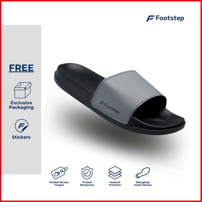 Sendal Cowok Footstep Porto Grey Slide Sandal Shoes Pria Selop Karet Black