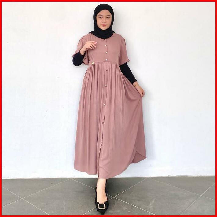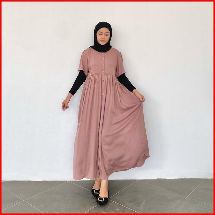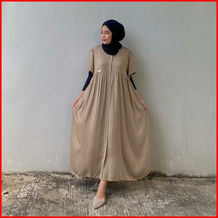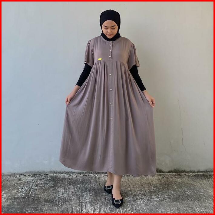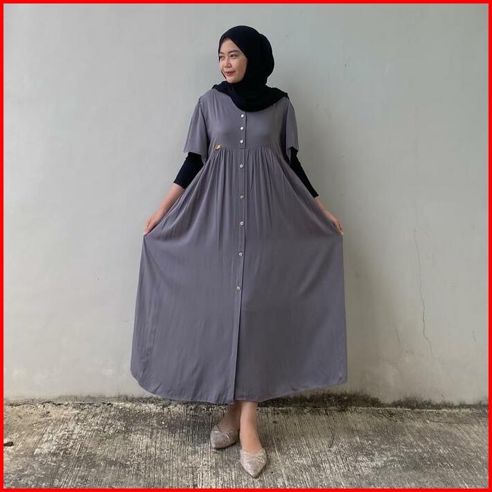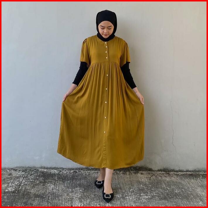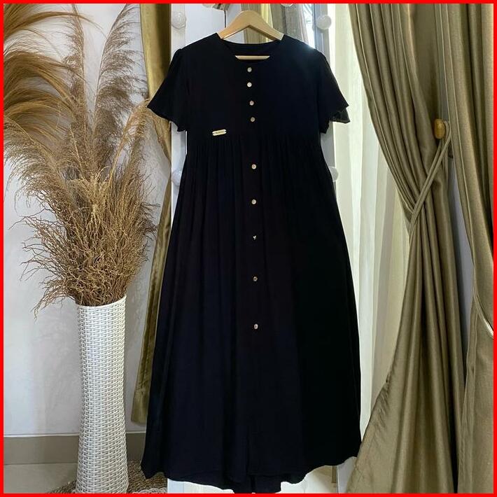 Lylaa Dress Midi Dress Rayon Twill Lengan Pendek Simpel Adem Busui Friendly Daster Busui Polos Kancing Depan Adem Rayon