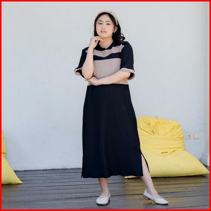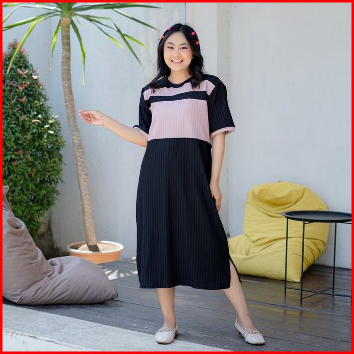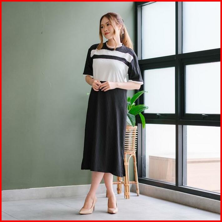 Yoenik Jiyoo Knit Midi Dress Dress Korean Style Dress Wanita Casual
