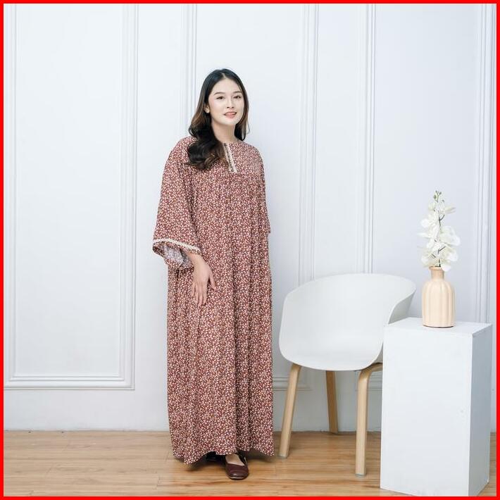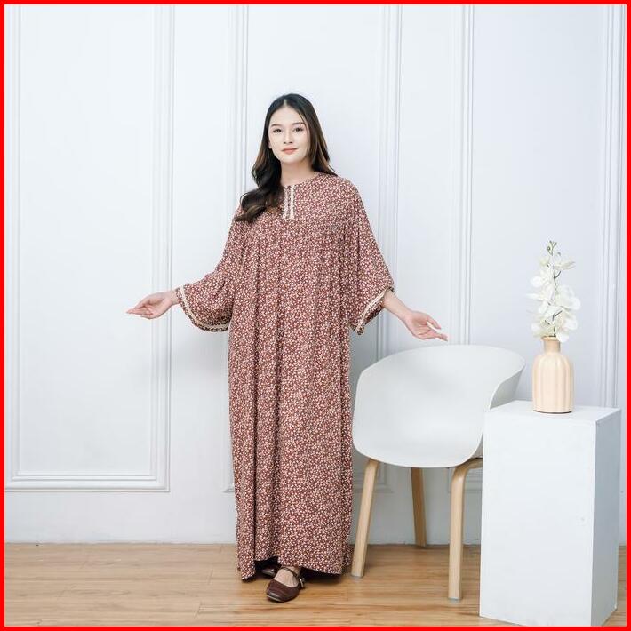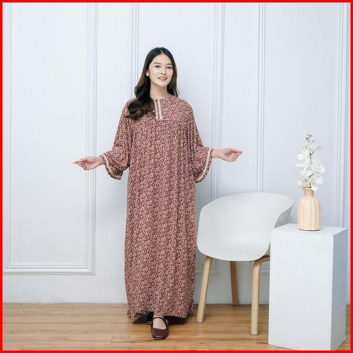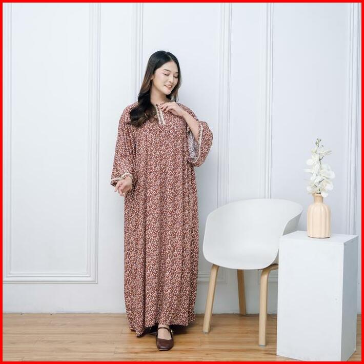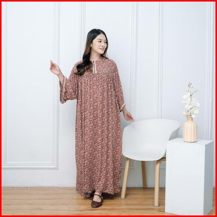 Daster Jumbo Dress Inara Big Size Motif Polos Bunga Renda Dada Wanita Bahan Rayon Nyaman Bumil Busui Midi Panjang Kancin