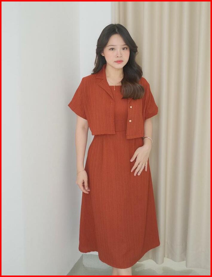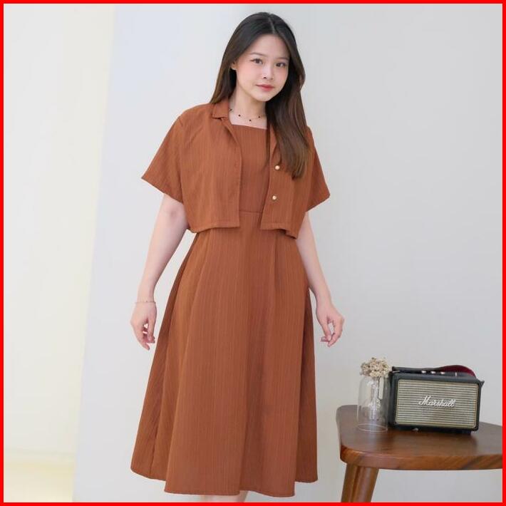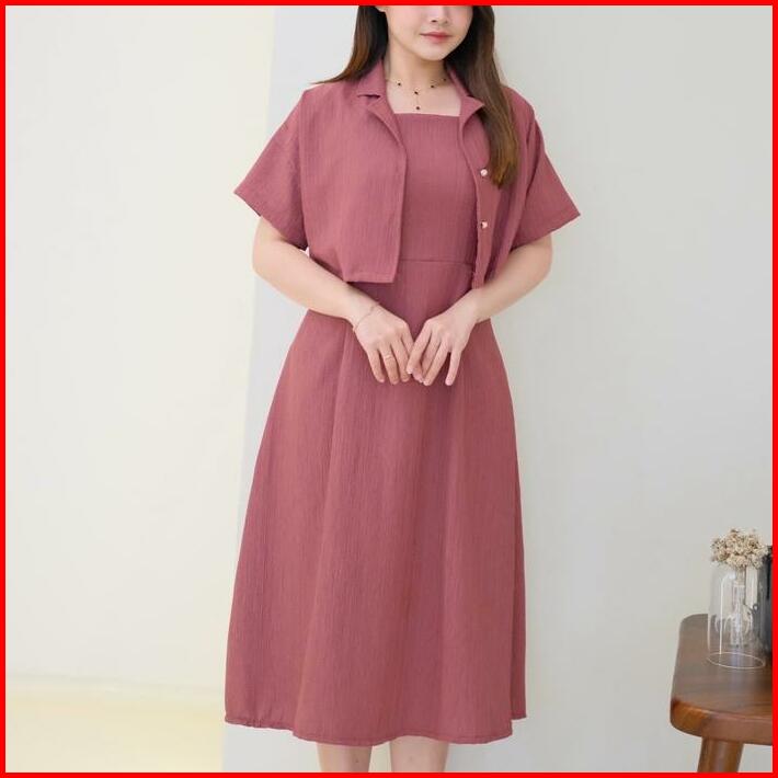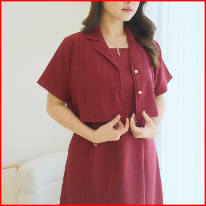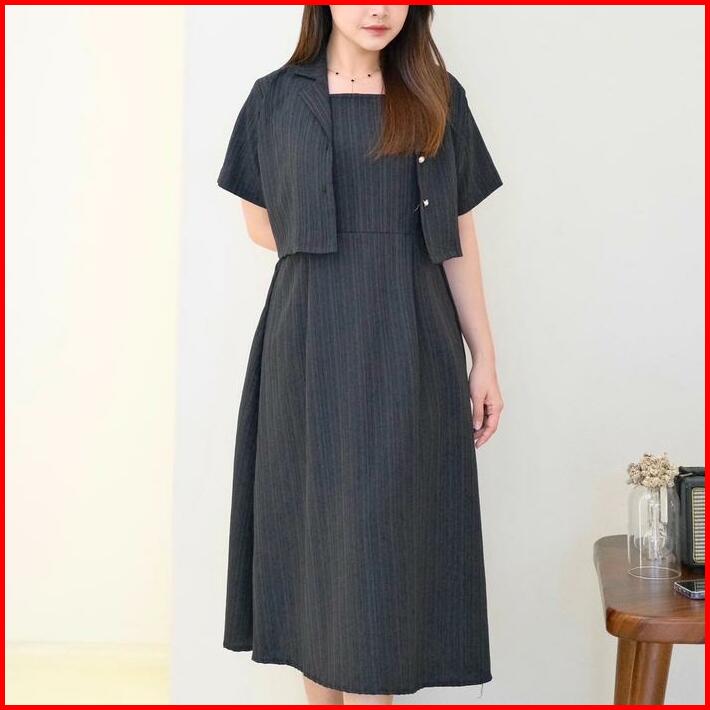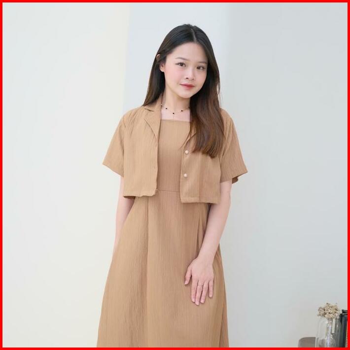 Hari Set 2in1 Midi Dress Blazer Blazer Crop Kancing Dress Midi Polos