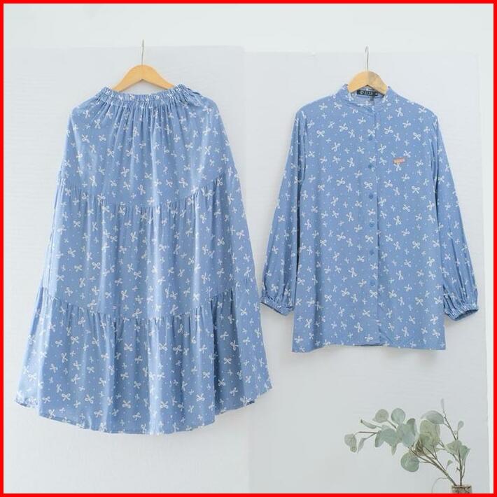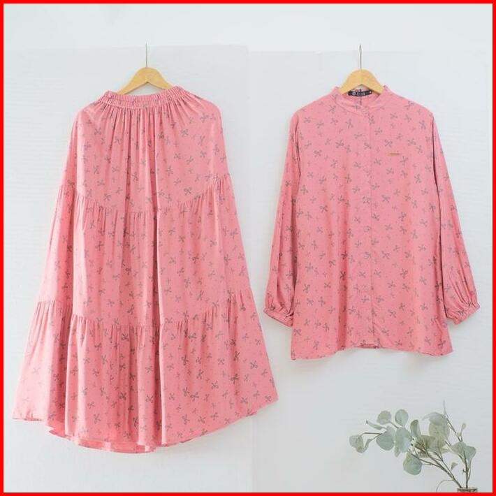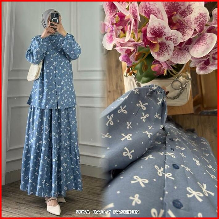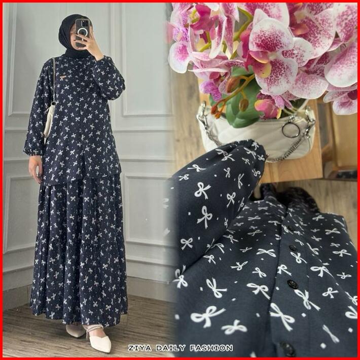 Set Rok Fuji By Ziya Bahan Cotton Rayon Premium Tebal Katun Hitam Kotak Twill Gamis Kancing Karet Muslim Wudhu Bumil Nya