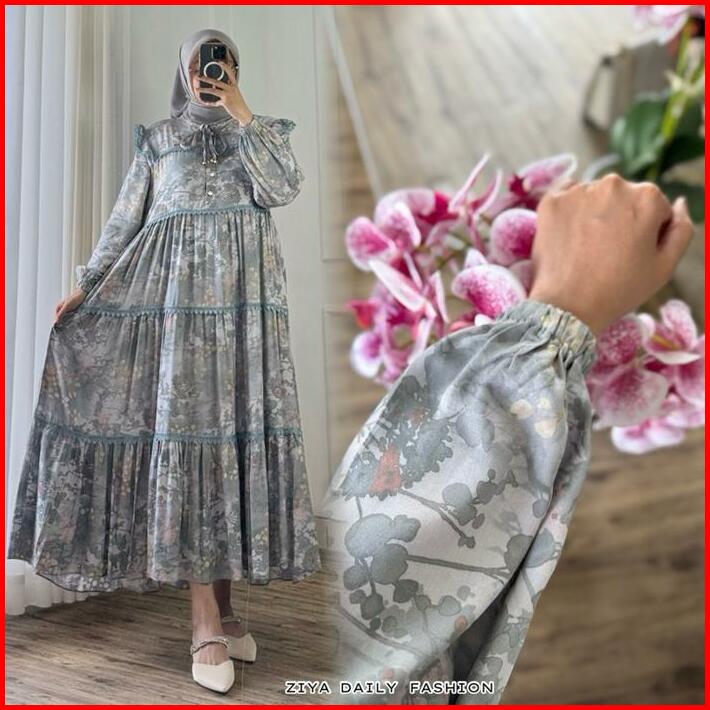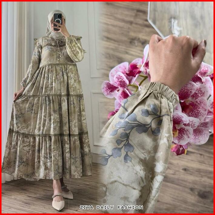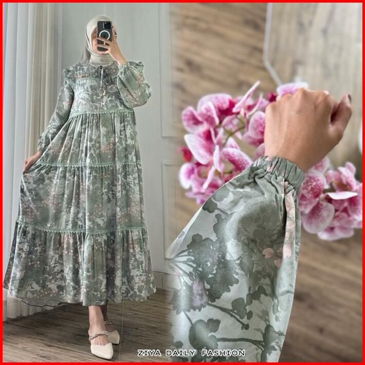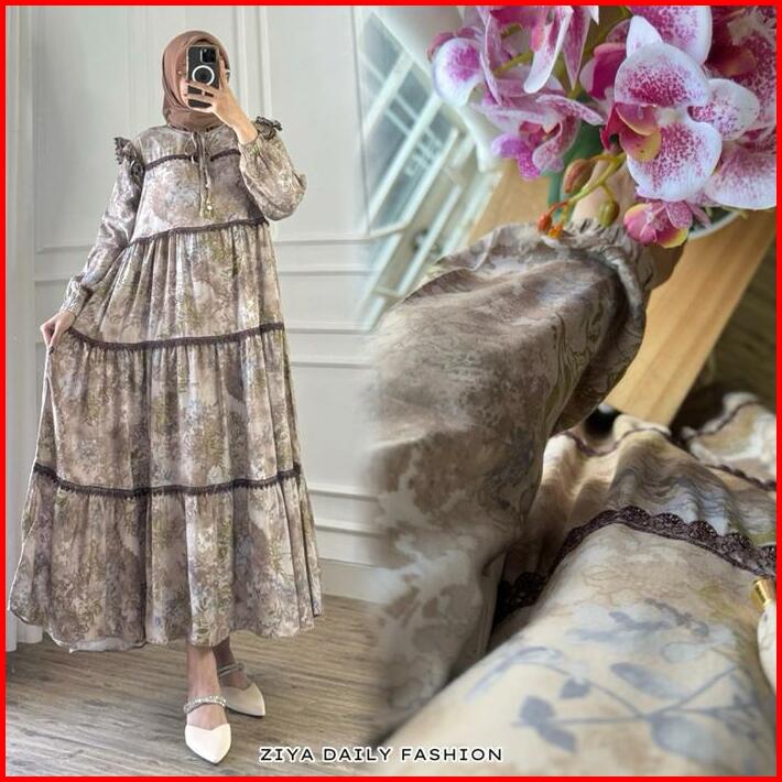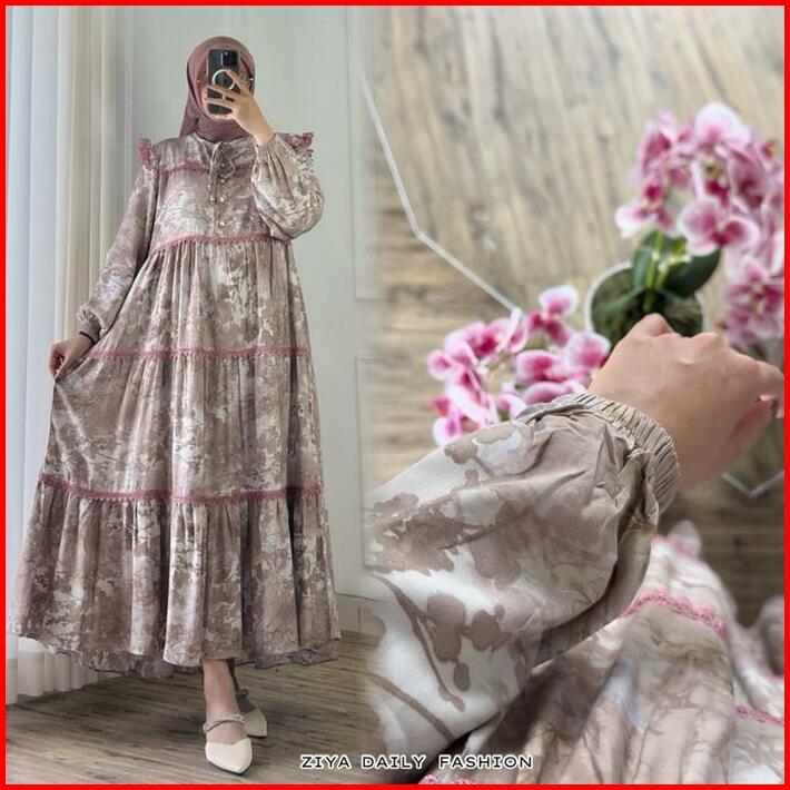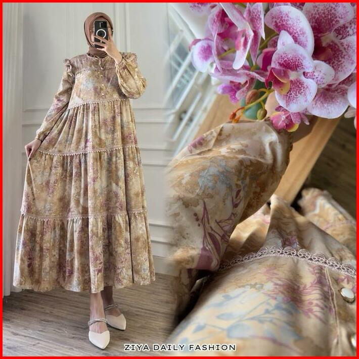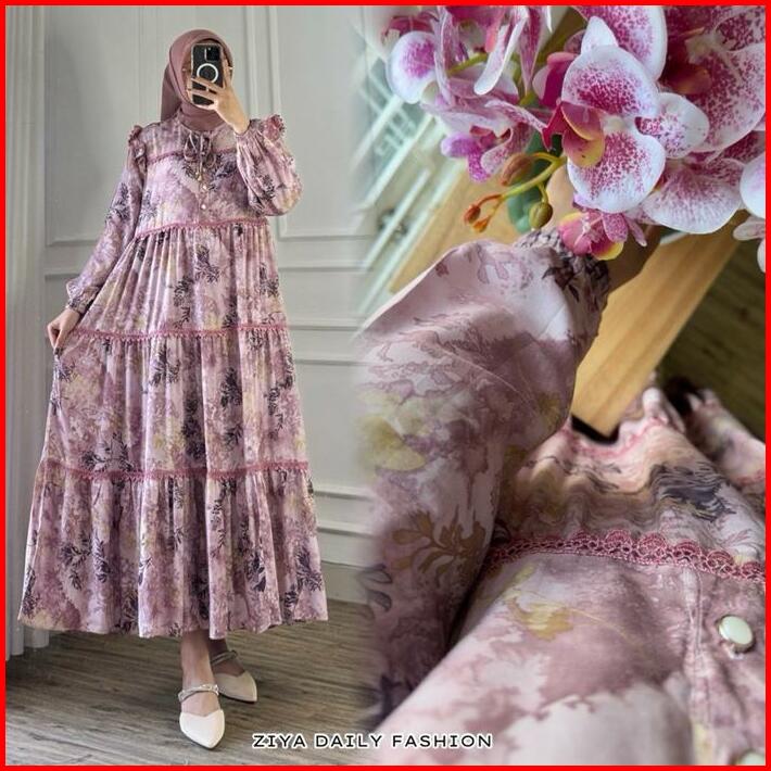 Ciara Midi Dress By Ziya Gamis Lebaran Rayon Premium Terbaru Cantik Diamond Ibu Kancing Karet Lembut Midi Nyaman Renda K
