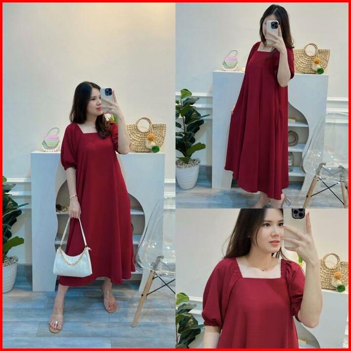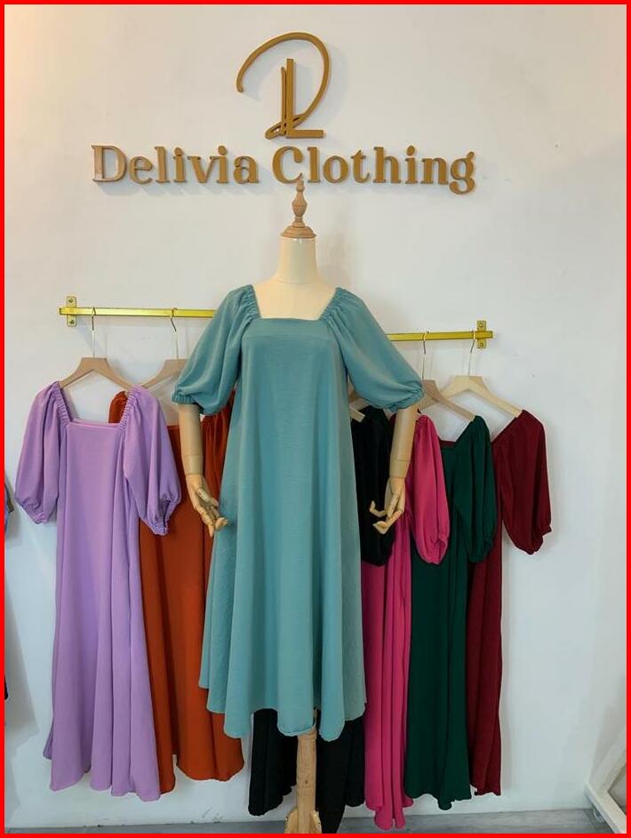 Delivia-long Midi Dress Mano Ribtop Crinkle 7001-1