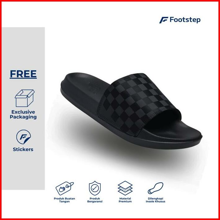 Sendal Cowok Footstep Hexa Black Slide Sandal Shoes Pria Selop