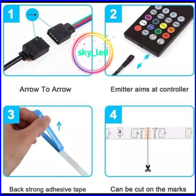 Lampu Led Strip 5050 3528 2835 Rgb 5m 10m Ip44 Ip33 Rgb Remote Lampu Hias Warna Warni Lampu Kamar Aesthetic Tumblr Plafo