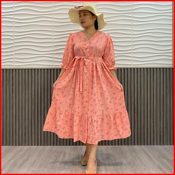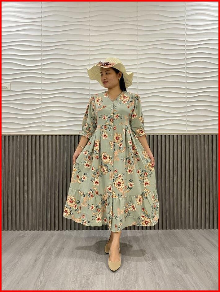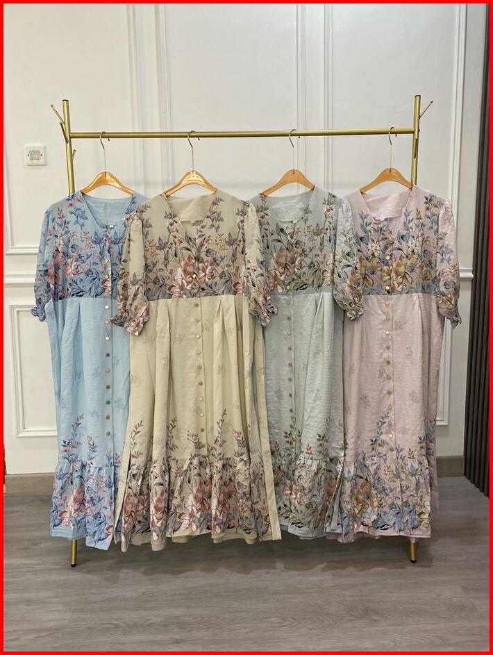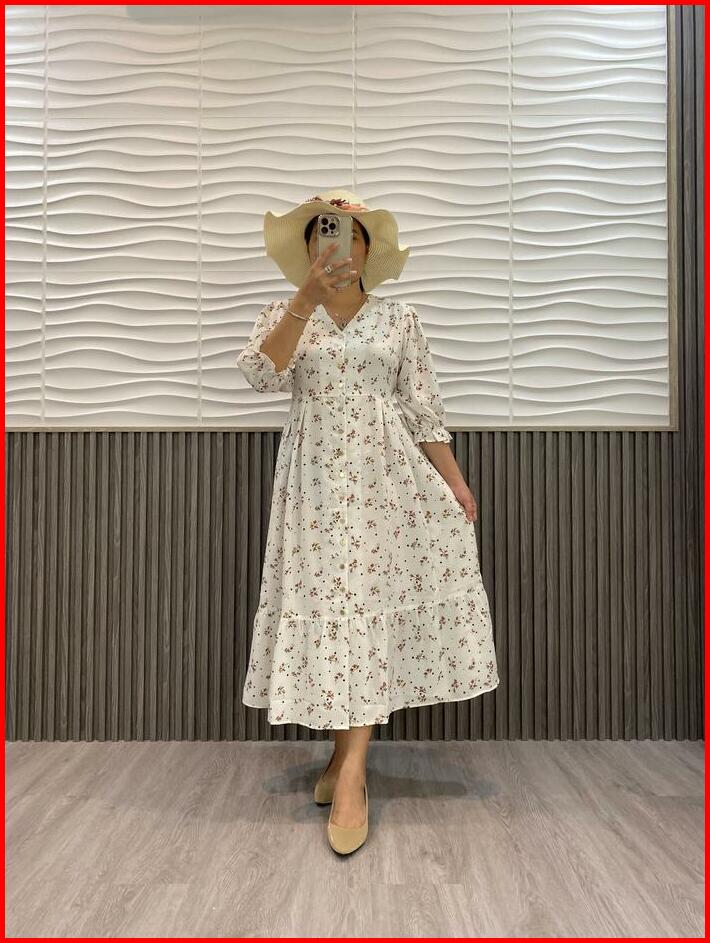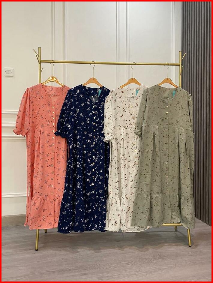 Tnae Felin Midi Dress Motif Bunga Crinkle Premium 171 Airflow Casual Kancing Bumil Busui Gaun Nyaman Gaun Kasual