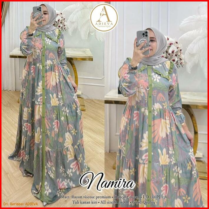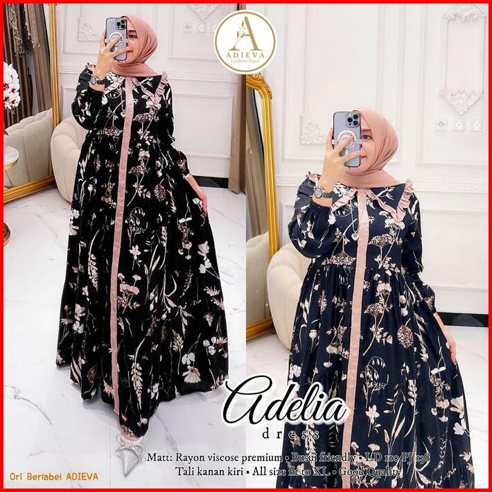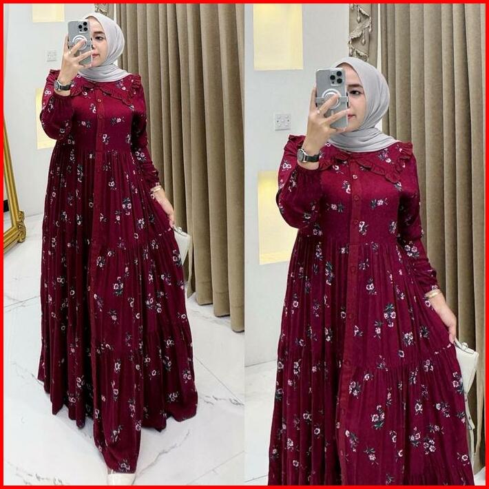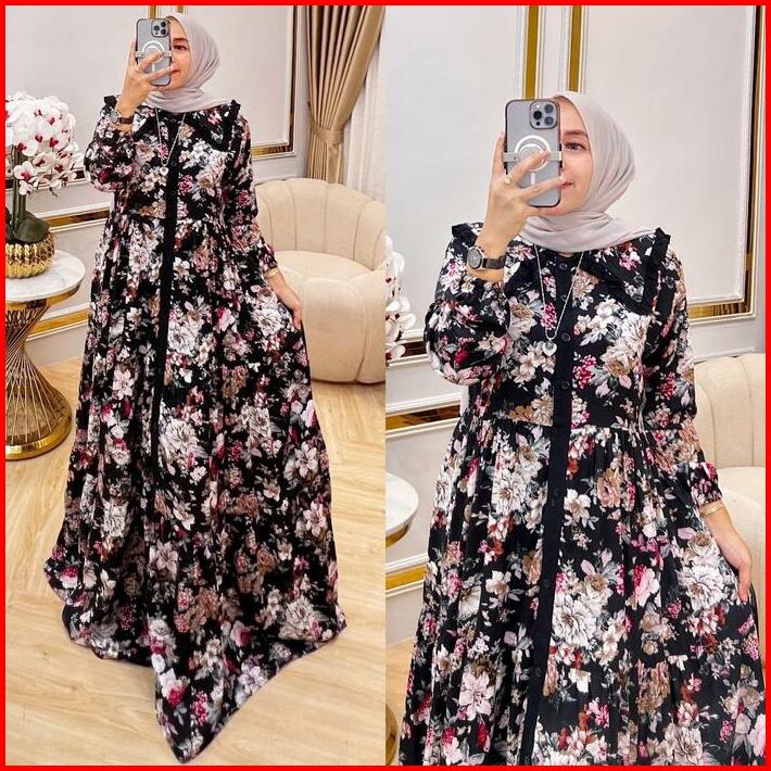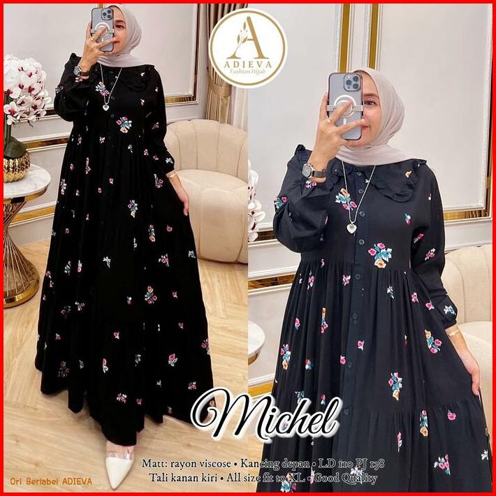 Michel Dress Rayon Viscose Premium Fit Kancing Muslim Nyaman Gamis Wanita Bunga Cantik Bunga Midi Motif Katun Remaja