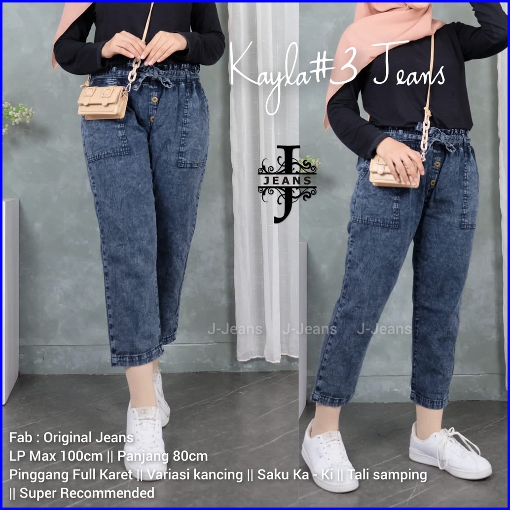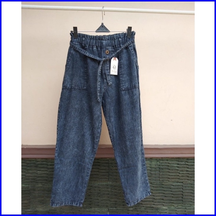Kayla 3 Celana Baggy Jeans Kancing Snow High Waist Dengan Tali Gesper