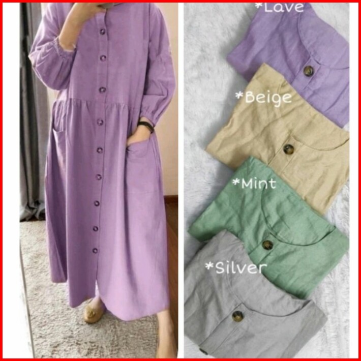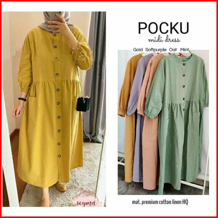 Midi Dress Katun Linen Rami Premium Pokita Midi Dress Katun Linen