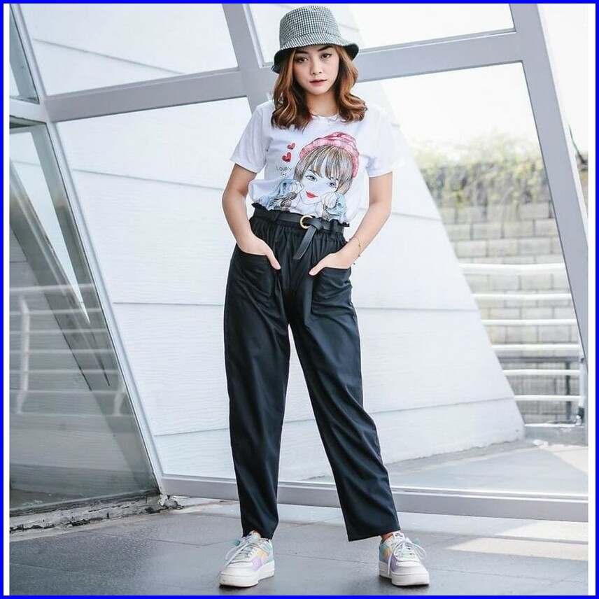 Anya Pants - Celana Panjang Wanita Kantong Pocket Depan Mosh Pants Baggy Saku Depan