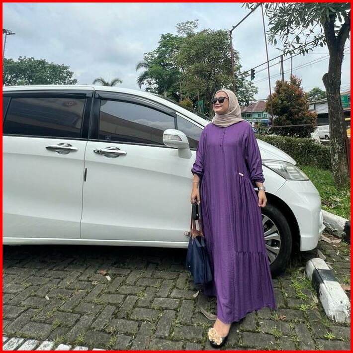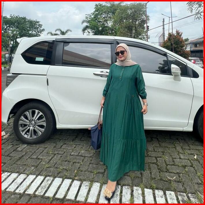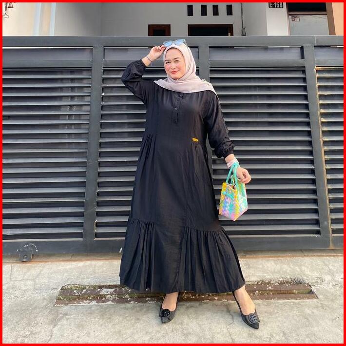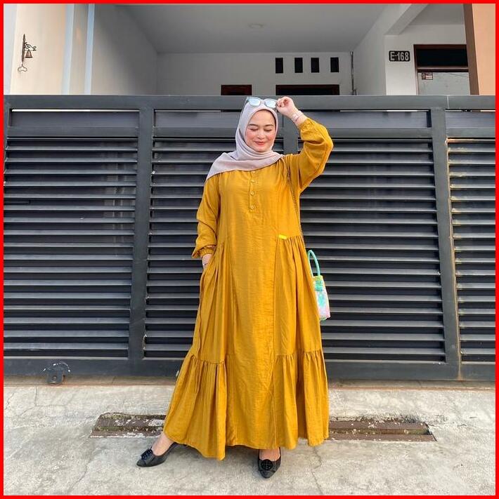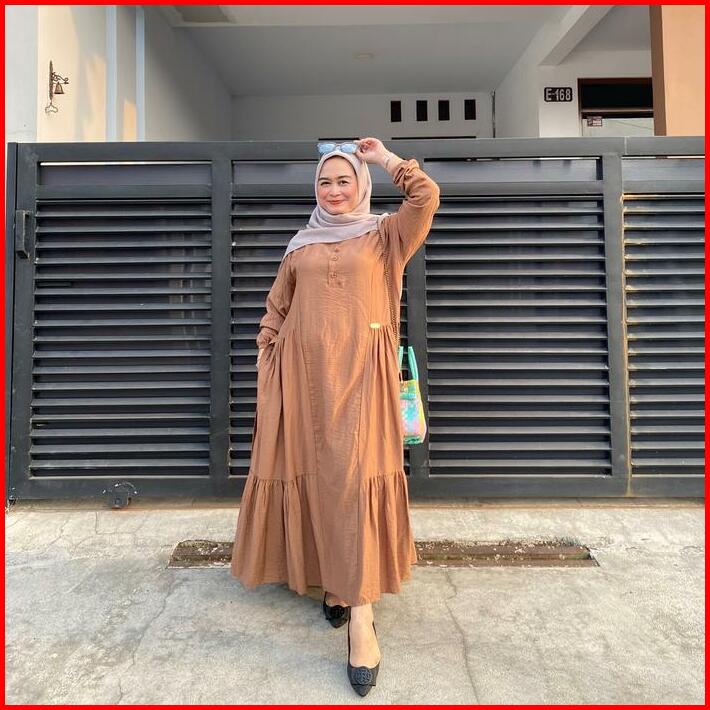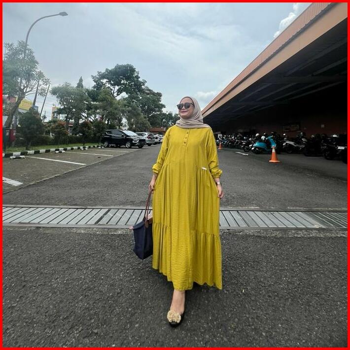 Gita Midi Dress Kain Polo Linen Premium Nyaman Ld120 Full Ruffle