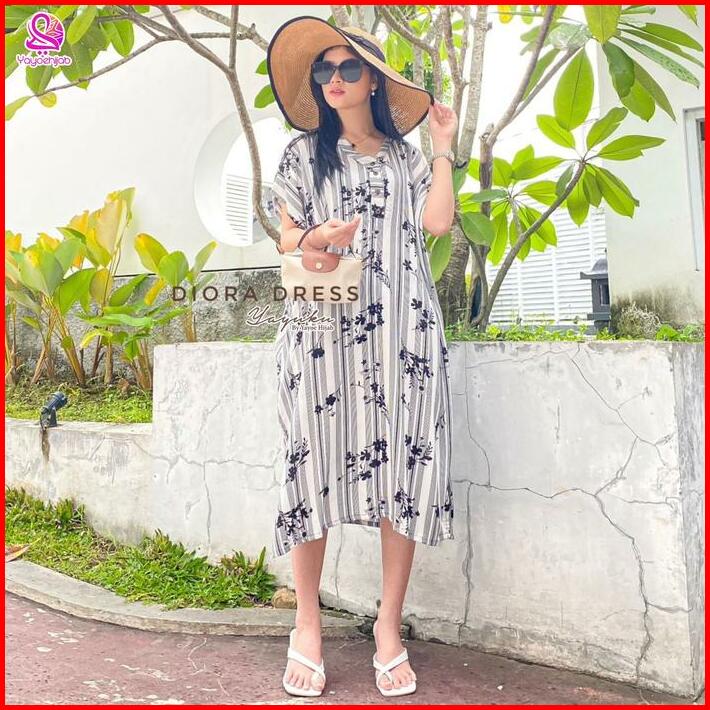 Diora Dress Blaster Busui Bumil Friendly Rayon Motif Casual Wanita Katun Baju Midi Daster Dewasa Pendek