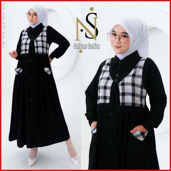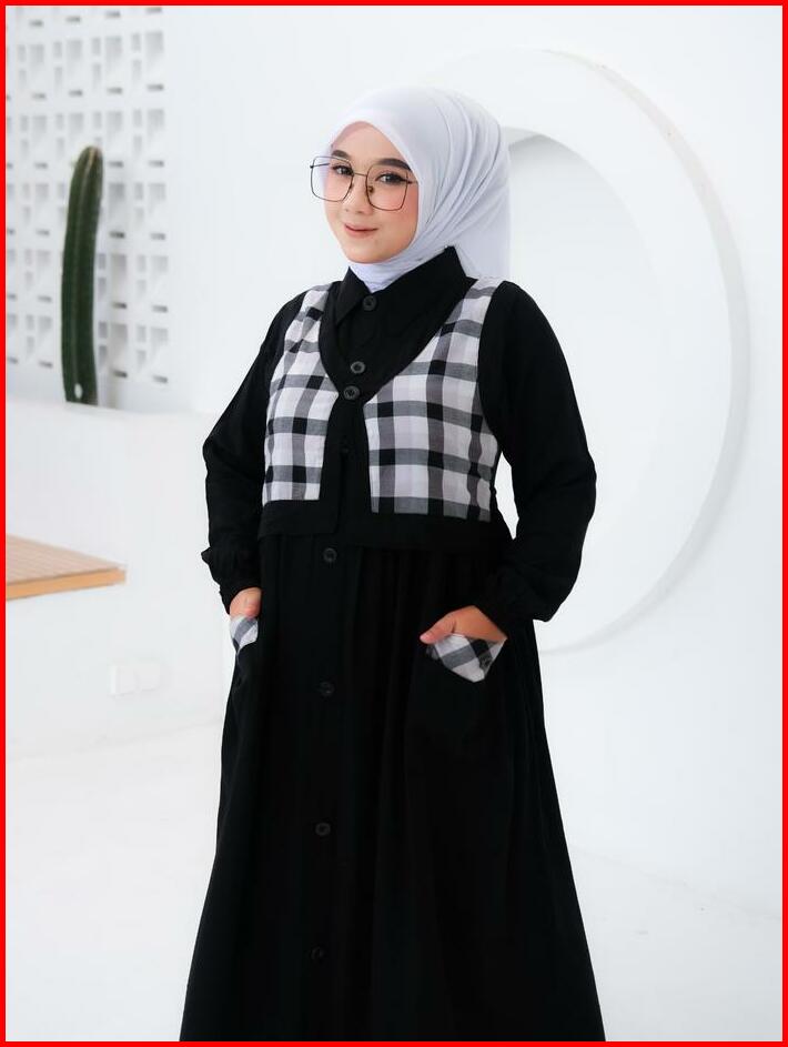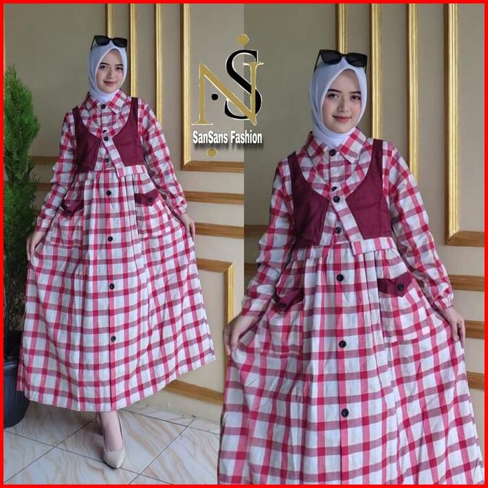 Yumna Midi Dress Muslim Katun Vest Kotak Wanita Remaja Dewasa Cantik Rayon Casual