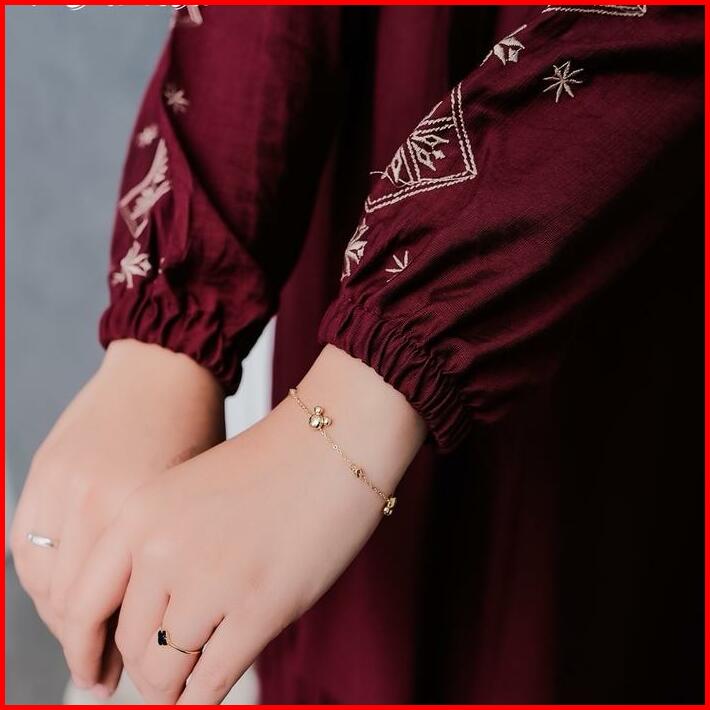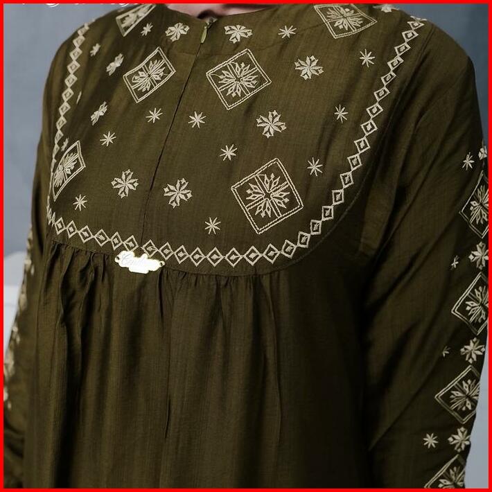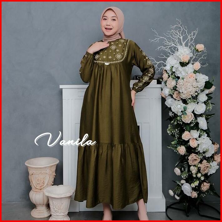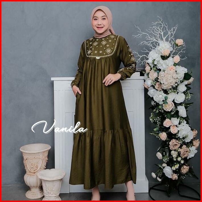 Anjani Midi Dress Polo Linen Mix Bordir By Vanilahijabfashion Muslim Wanita Kondangan