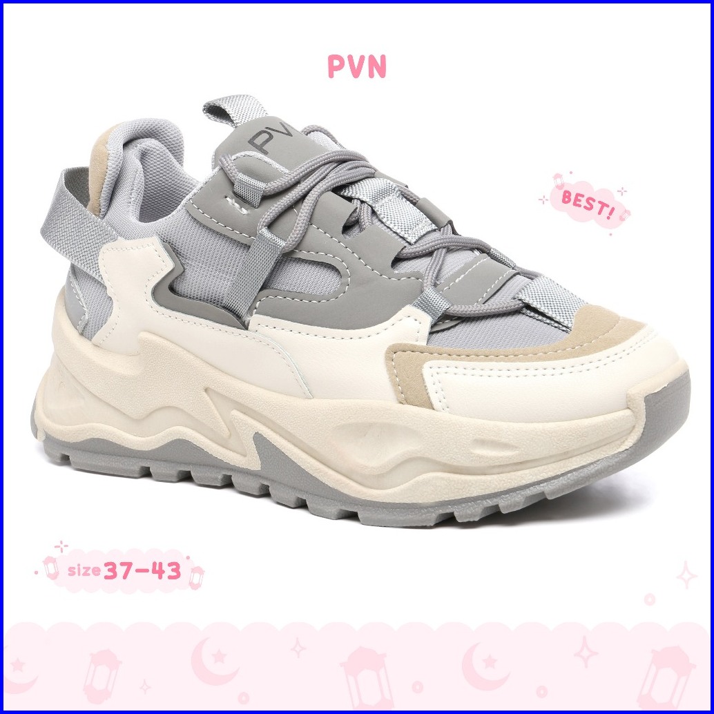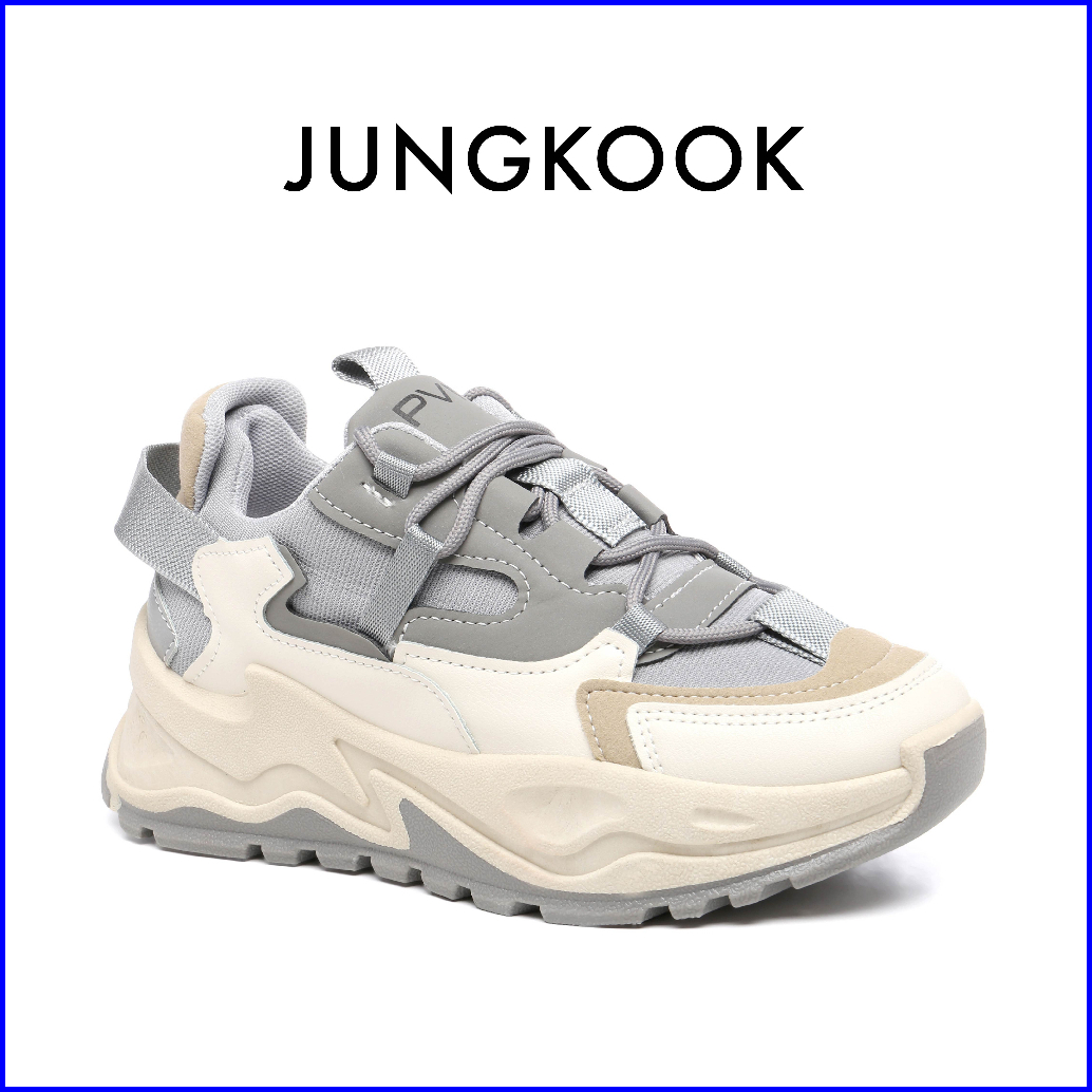 Pvn Jungkook Sepatu Sneakers Wanita Sport Shoes Grey Krem 129