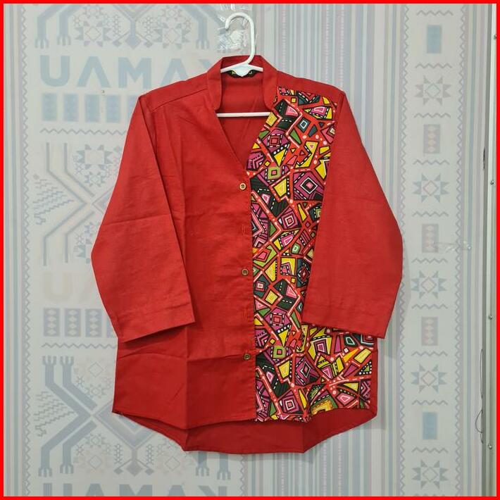 KEMEJA VNECK SQUAREA MERAH