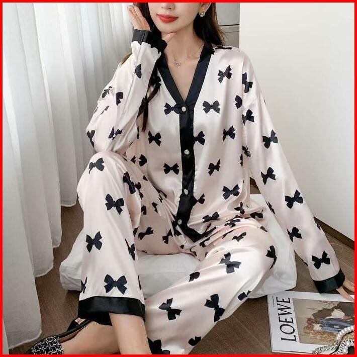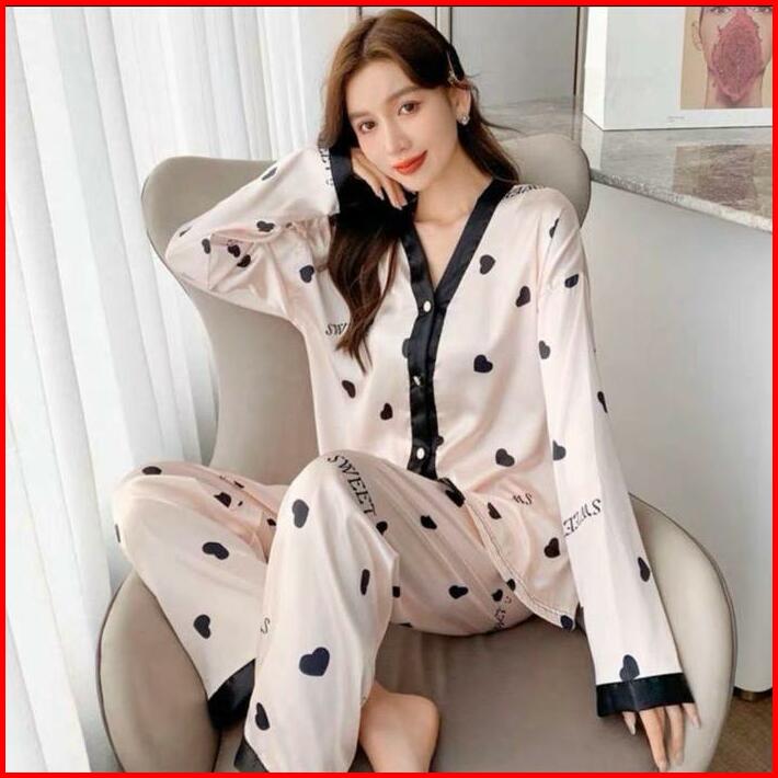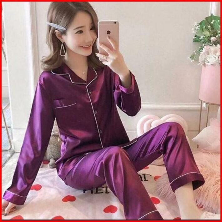 Markas Fashion99 Piyama Satin Panjang Wanita Dewasa Murah Satin Setelan Baju Celana Pink Salur Tidur Pendek