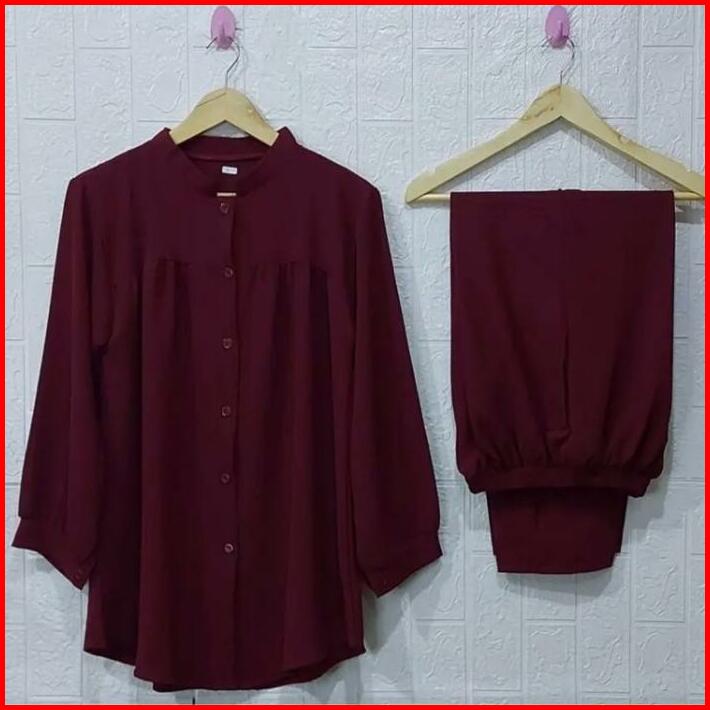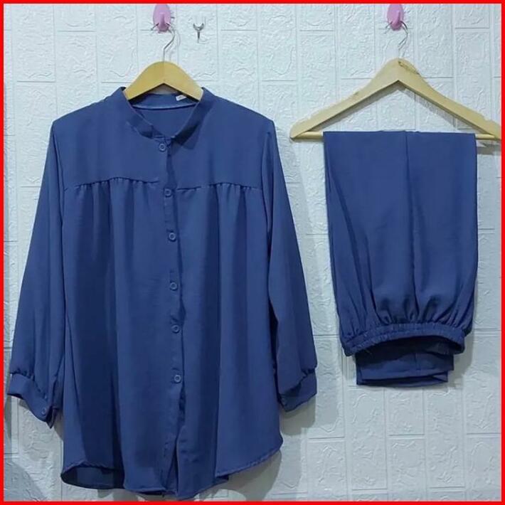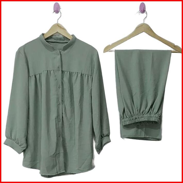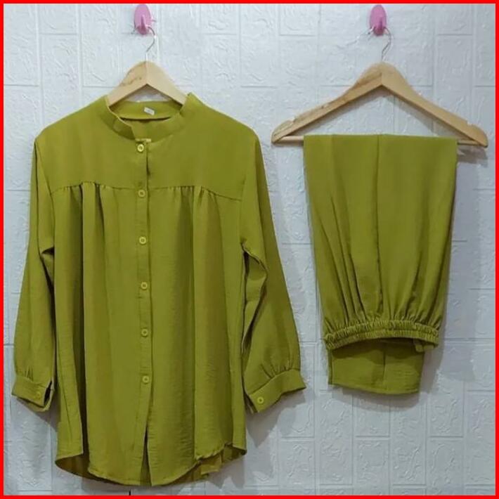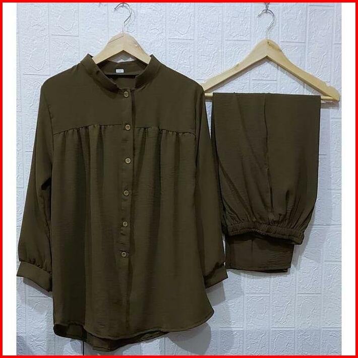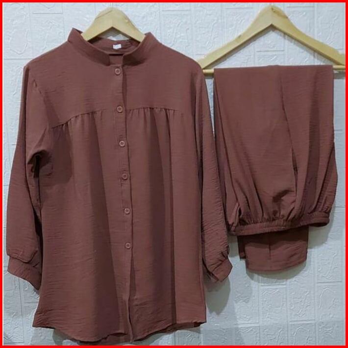 One Set Terbaru 2024 Setelan Wanita Kekinian Set Crinkle Oversize Wanita Pocket One Set Outfit Setelan Wanita Busui Frie