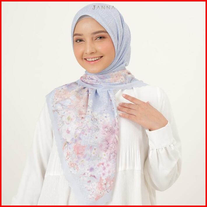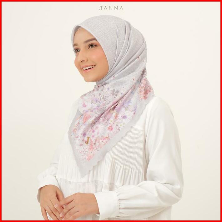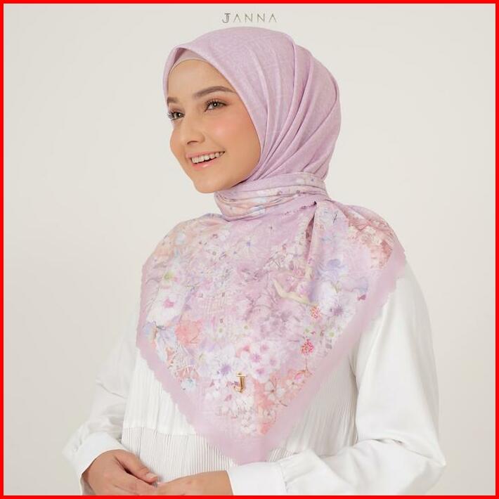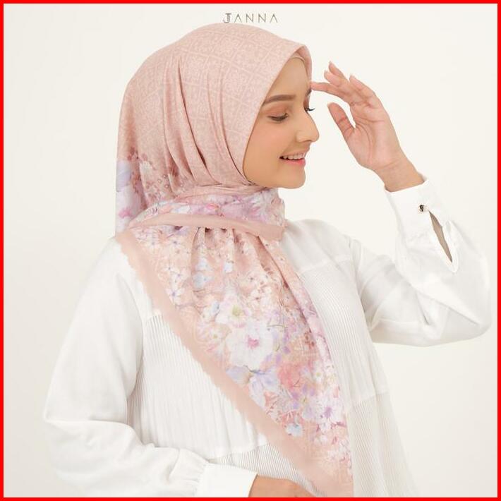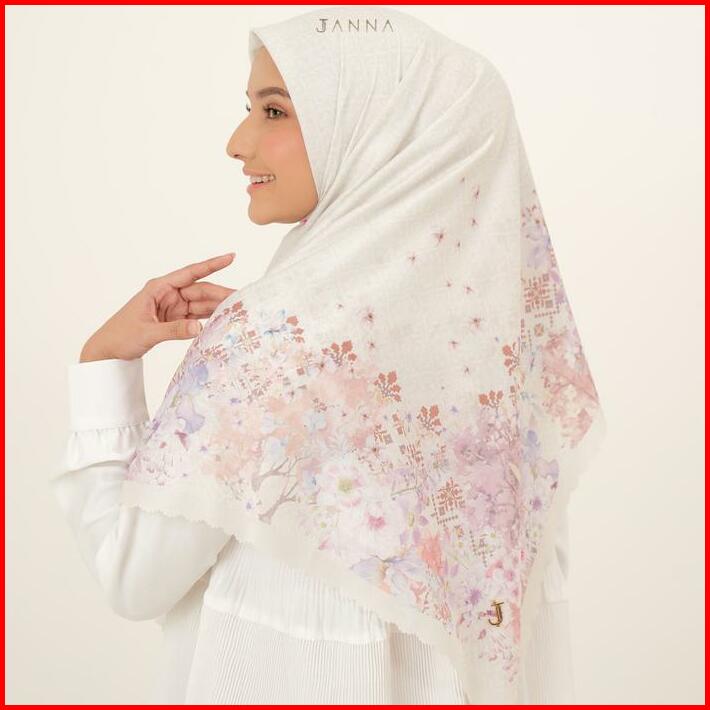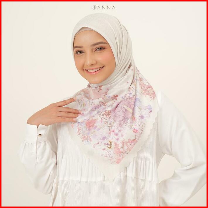 Janna The Peony Series Hijab Motif Lasercut Segiempat Premium Voal Square Muslim Nyaman Kerudung Logo