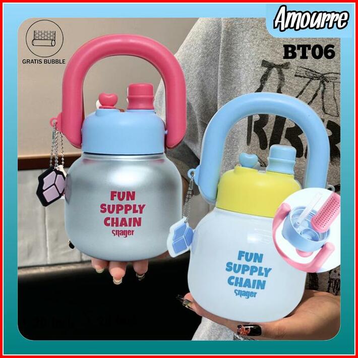 Snager Botol Air Minum Anak Metalik Bulat Panda Tritan Dua Cara Minum Linlin Bottles Water Sedotan Aesthetic Bt06 800ml