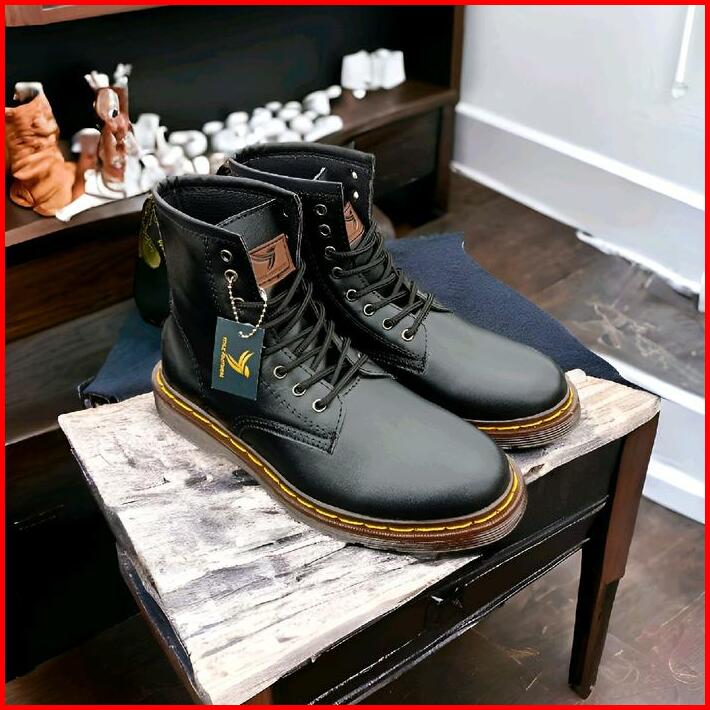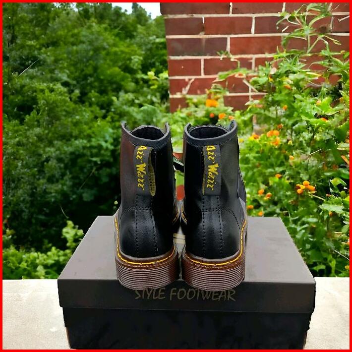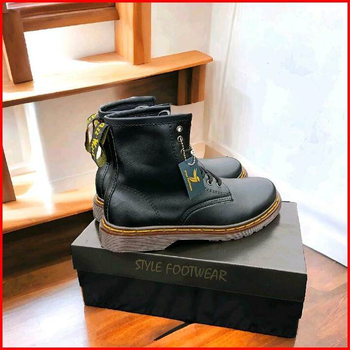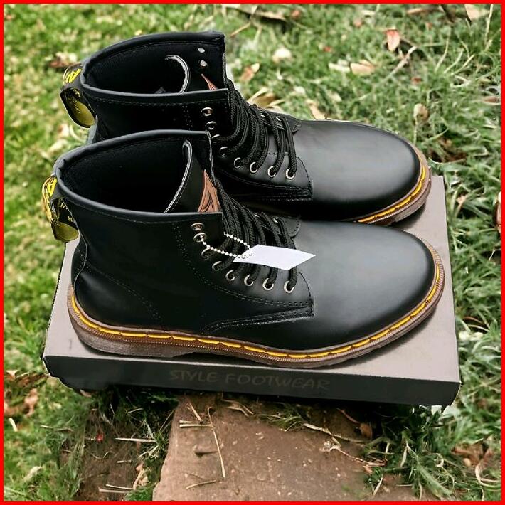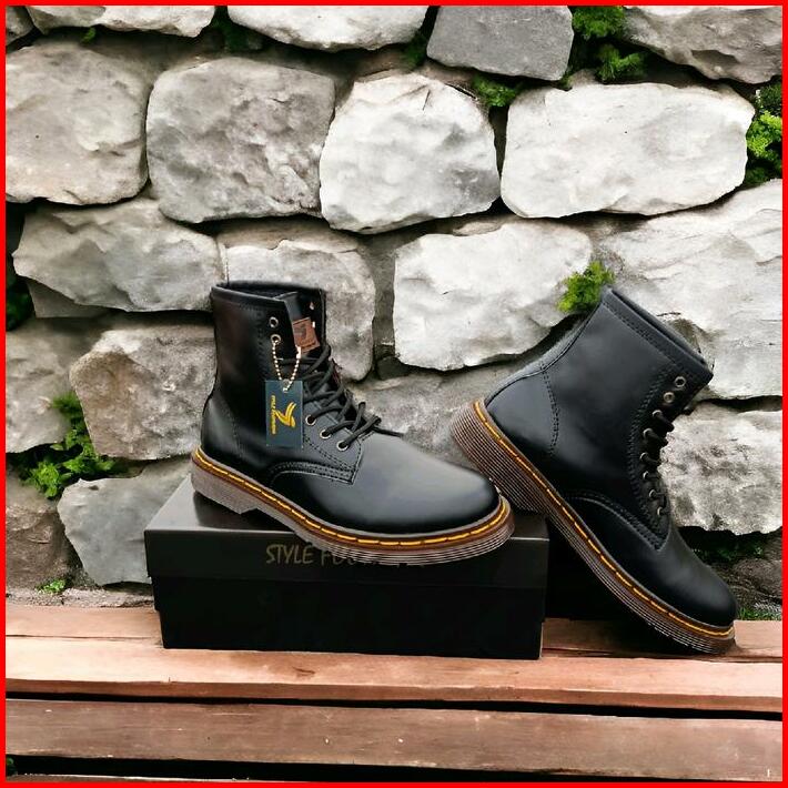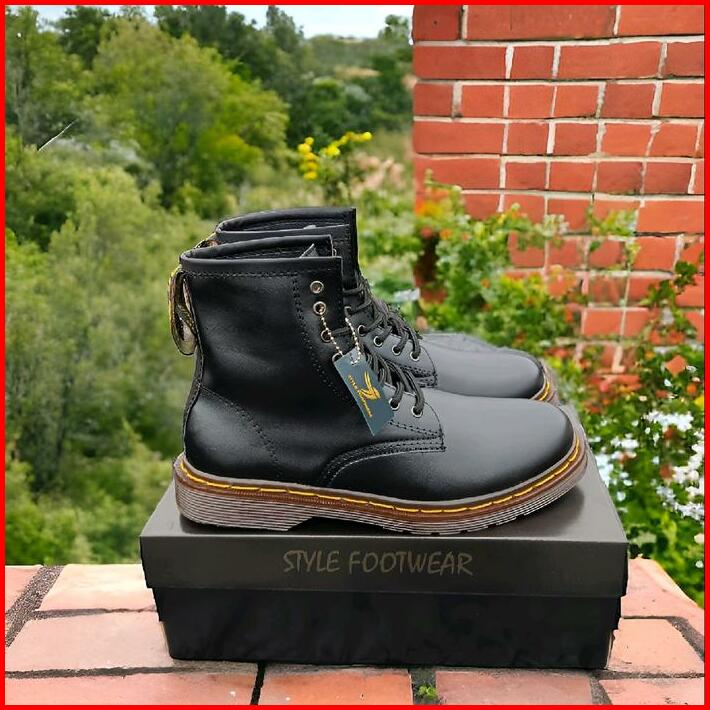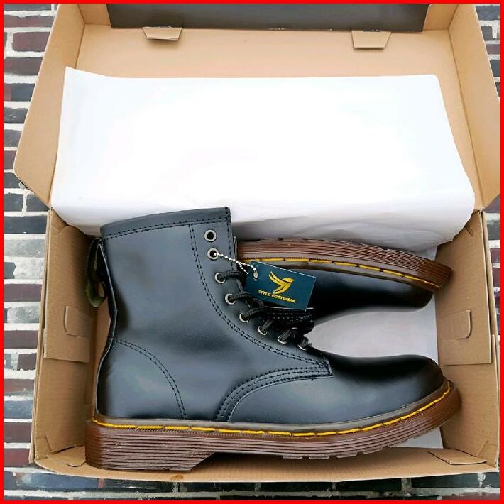 Sepatu Boots Stylefootwear 8 Hole Tinggi Hitam Pria Wanita Round Toe Square Toe Boots Model Docmart 8 Hole Shoes High Bl