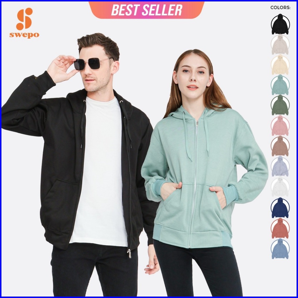 Swepo Hoodie Zipper Size M - Xxl Pria Wanita Polos