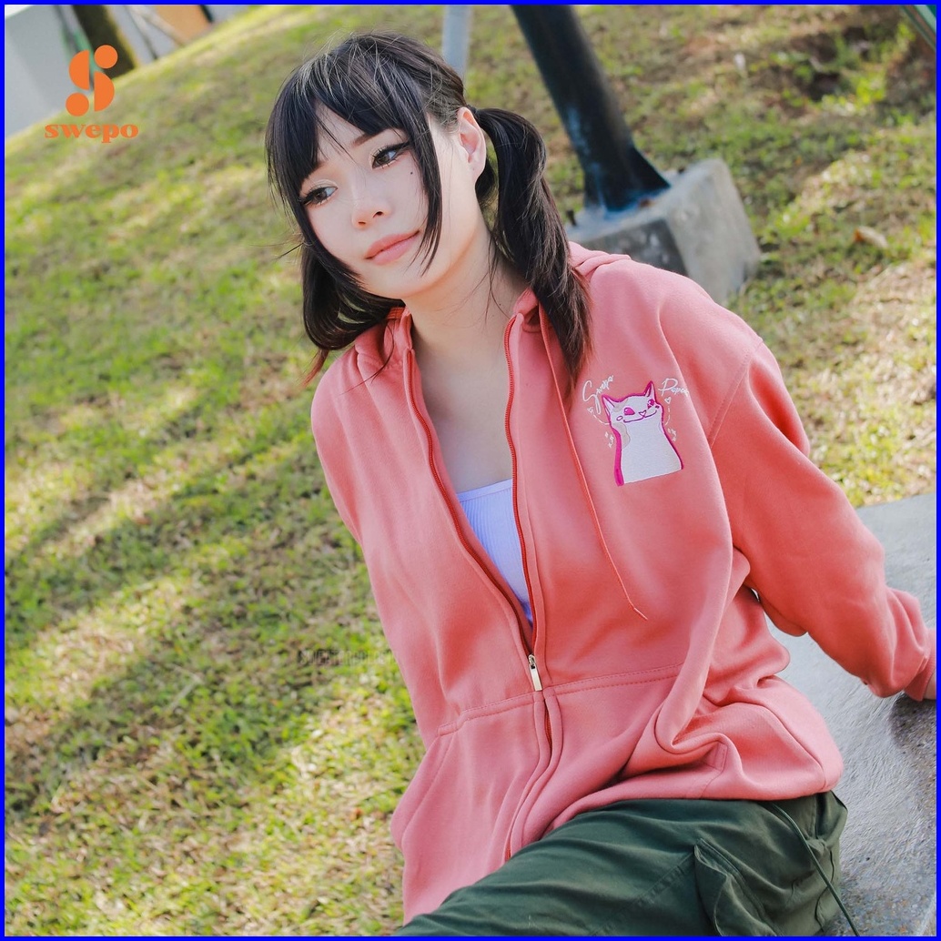 Swepo Hoodie Zipper Popcat Bordir Size M-xxl Pria Wanita
