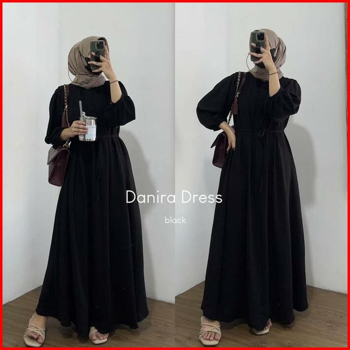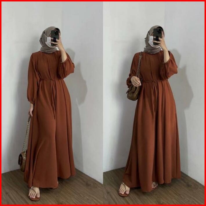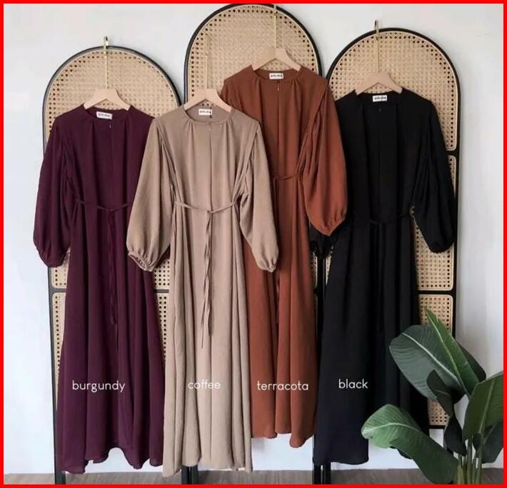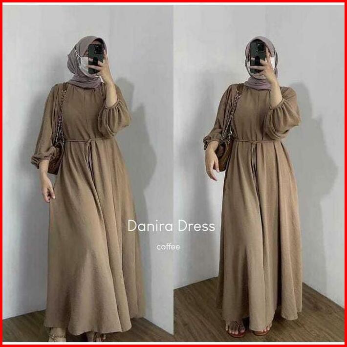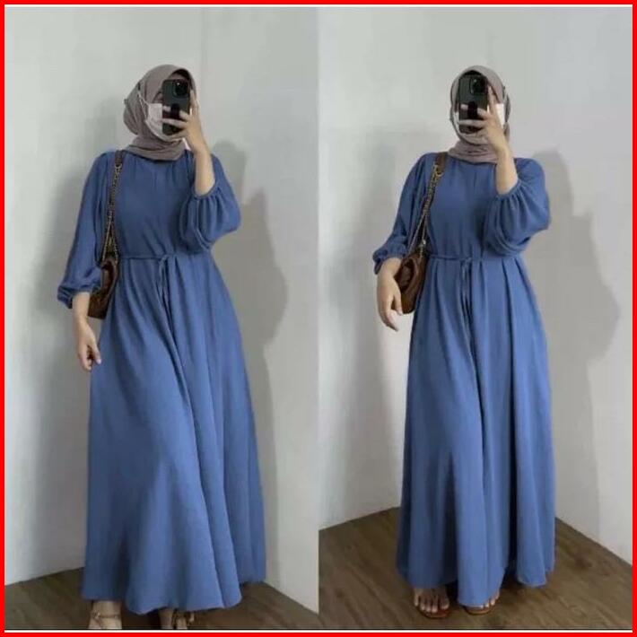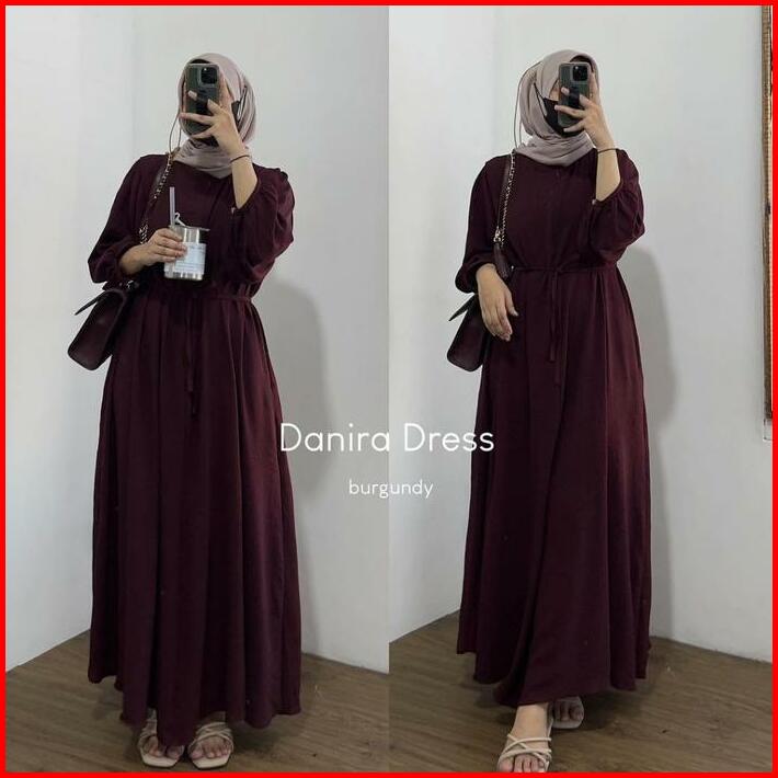 Danira Dress Crincle Airflow Midi Dress Wanita Tali Pinggang Busui