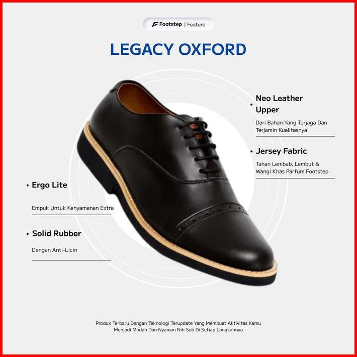 Sepatu Cowok Footstep Legacy Oxford Formal Shoes Pria Kerja Pantofel Black