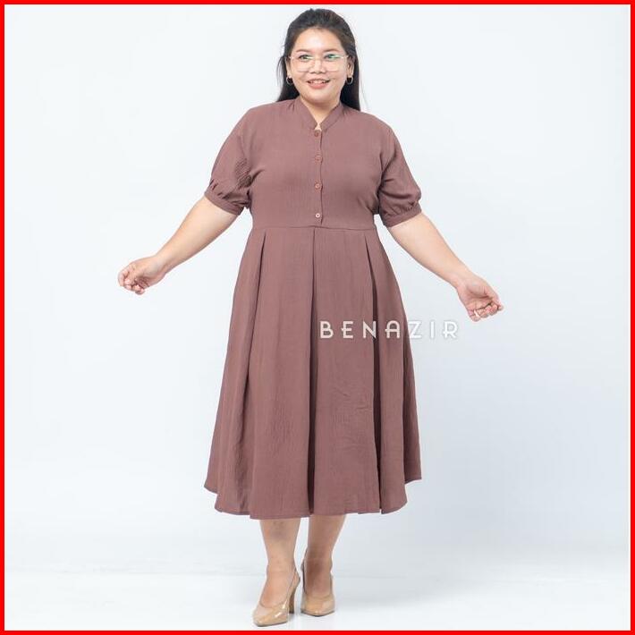 Home Dress Jennie Polos Lengan Pendek Midi Dress Bigsize Ld 120 130 Bahan Crinkle Airflow