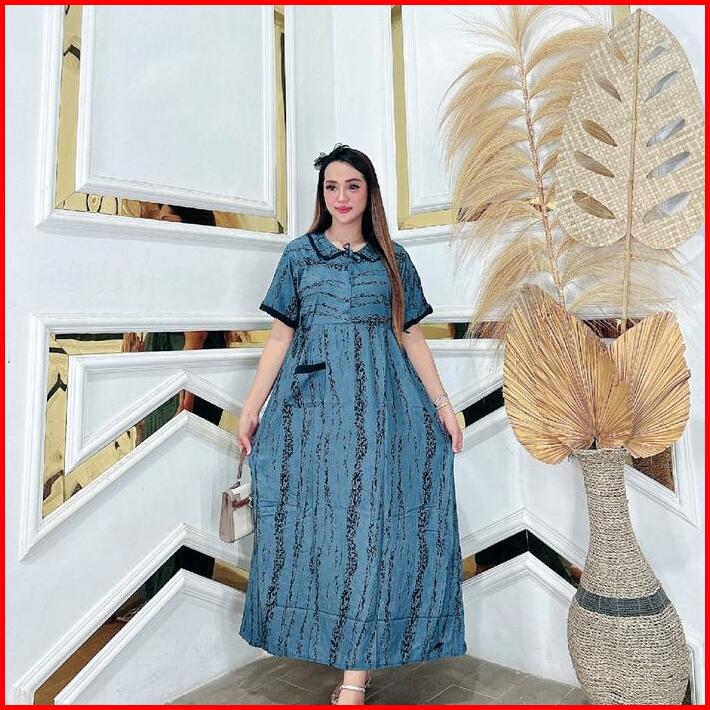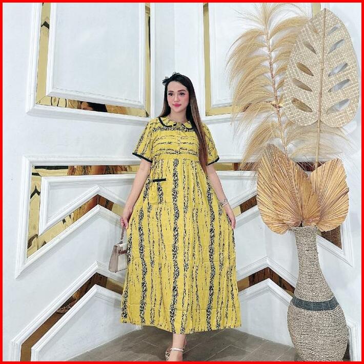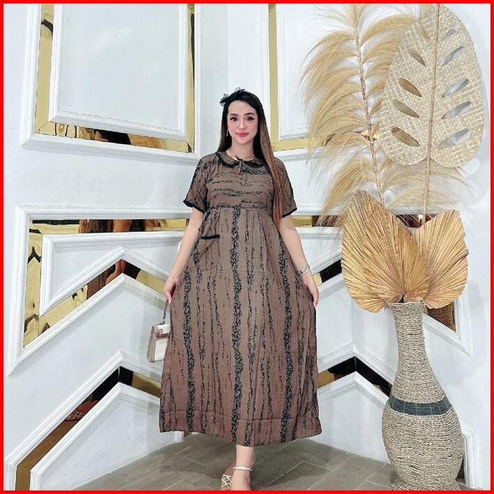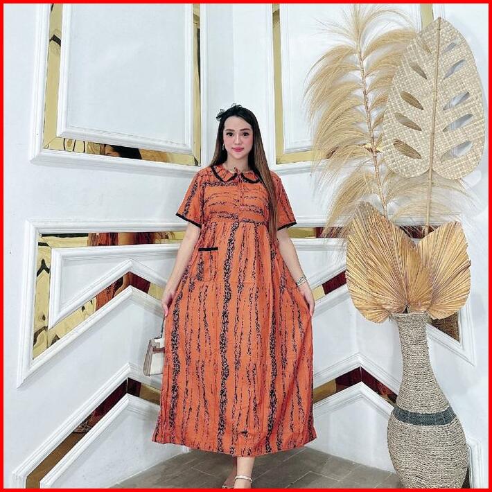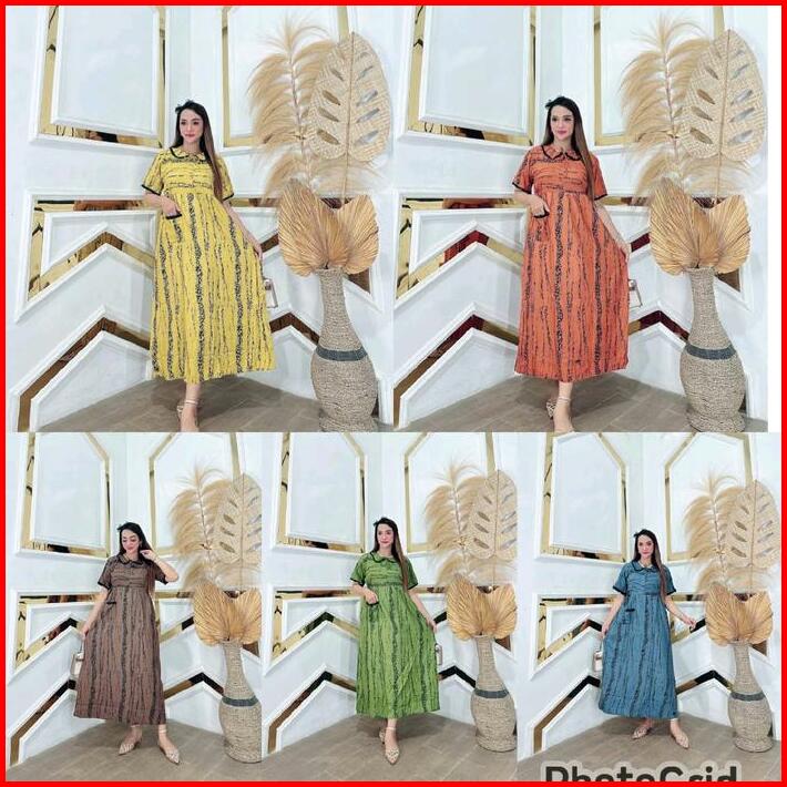 Dress Midi Kerah Kupu Wanita Kain Rayon Premium Tebal Nyaman Jumbo Ld 120 Panjang 128 Resleting Busui Bumil Tali Samping