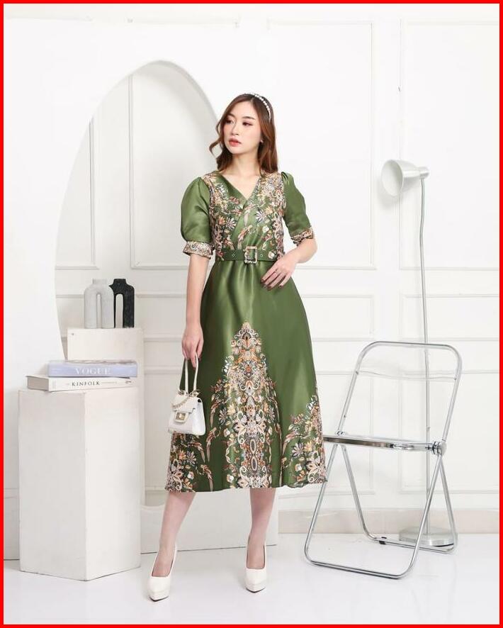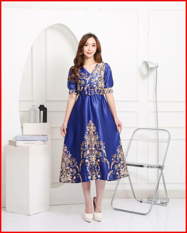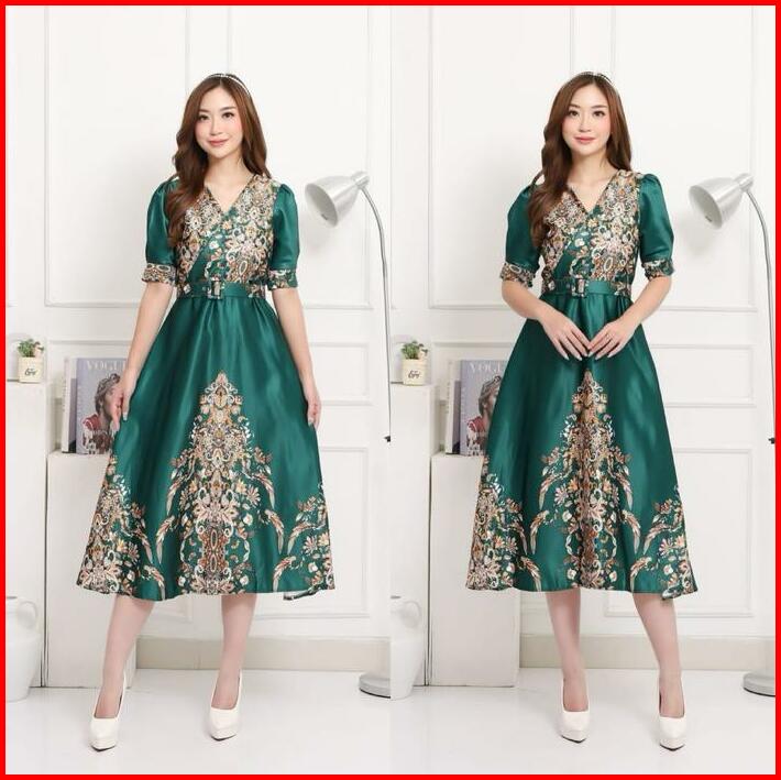 Emma.butik E00195 Midi Dress Lamaran Gaun Pesta Wanita Turkish Mewah Glamor Gereja Elegan Formal Pesta Motif Bunga V Nec