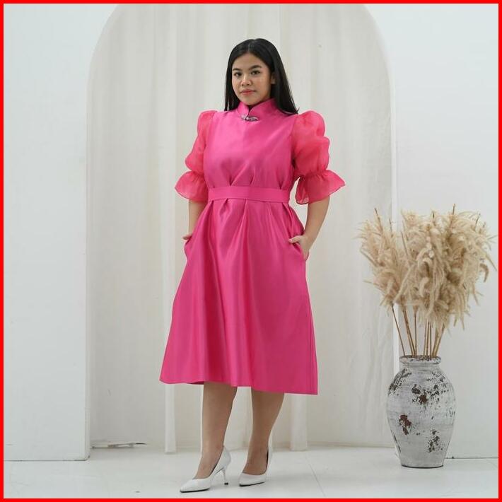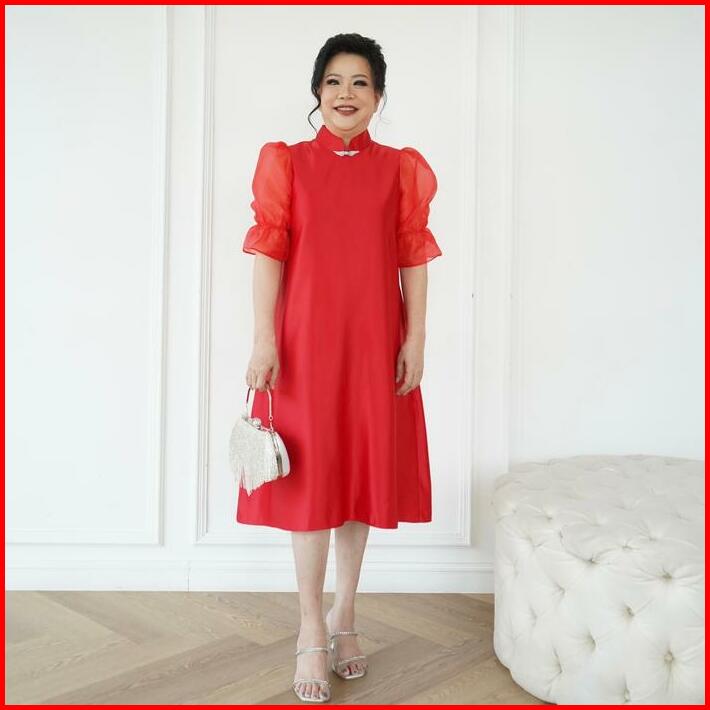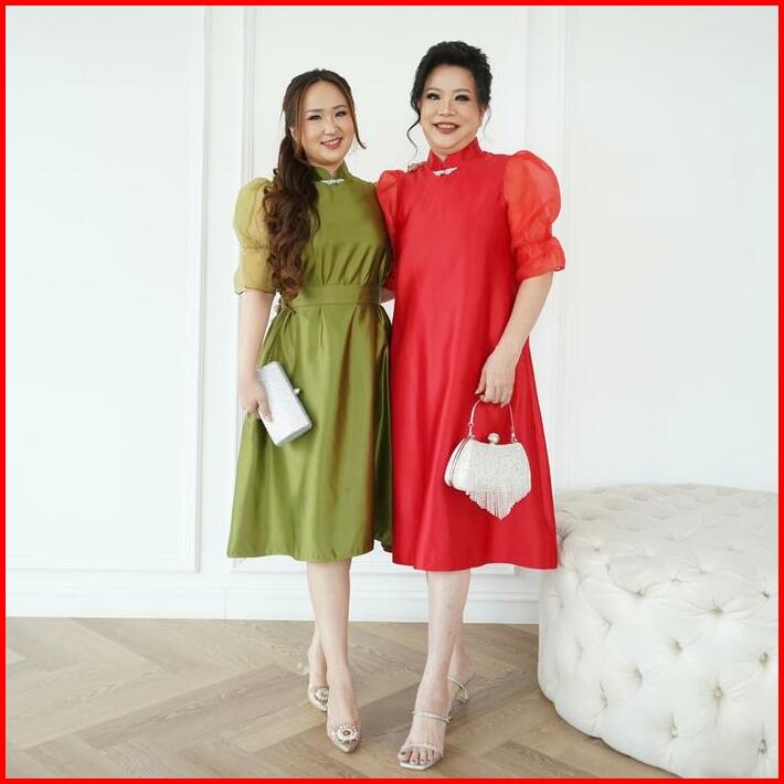 Victoria Wear House Wang Dress Qibao Cheongsam Congsam Midi Lengan Balon Puffy Organza Dres Gaun Terusan Pesta Wanita