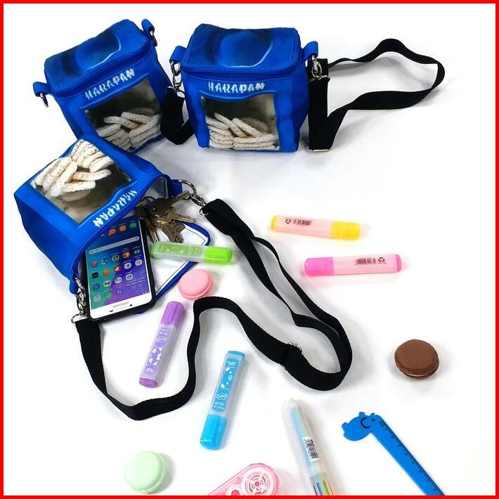 Tas Bahu Mini Selempang Kecil Kaleng Kerupuk Harapan Biru Kanvas Wanita Slingbag