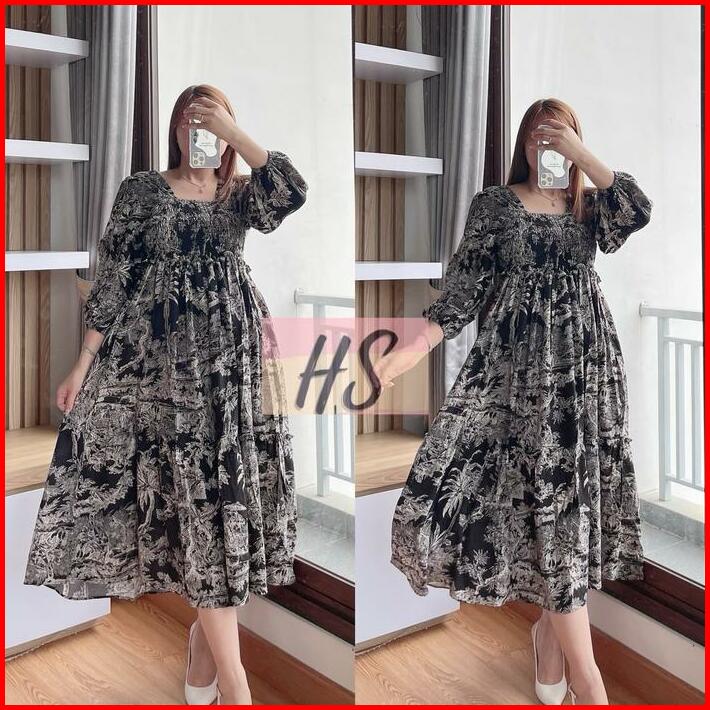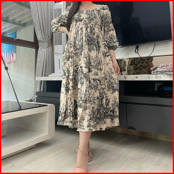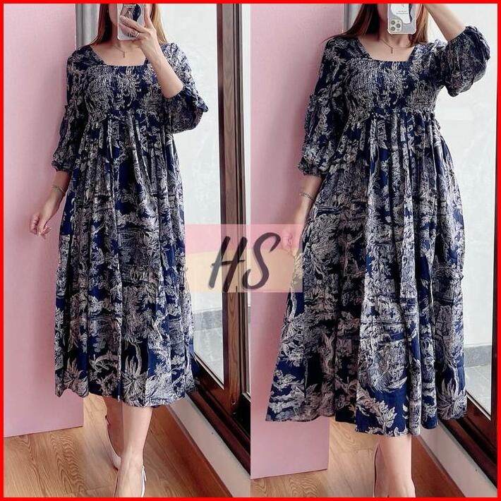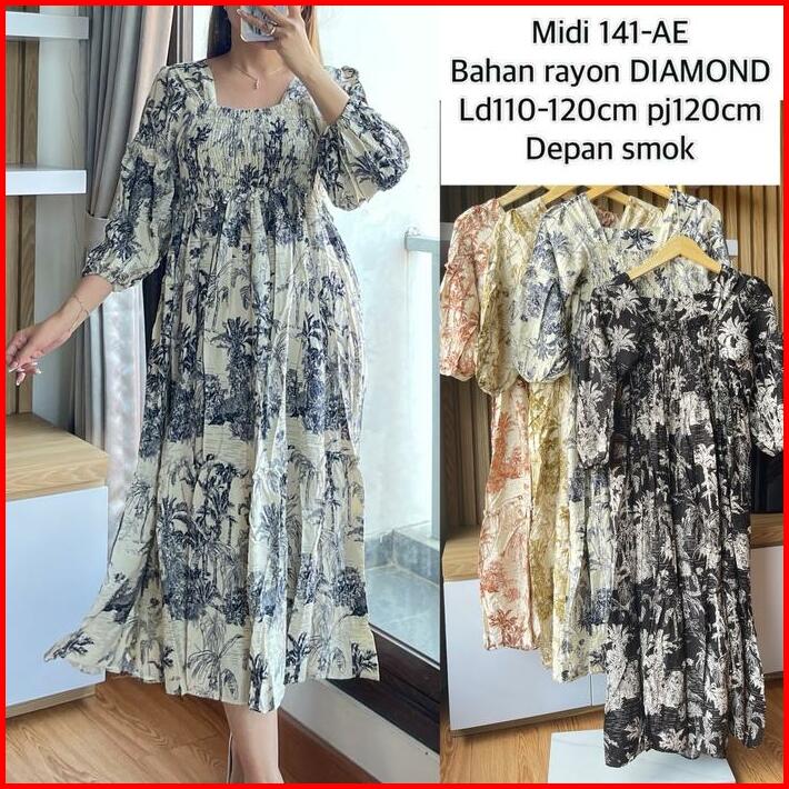 Midi Dress Premium Dio Casual Panjang Bumil Rayon Premium Well