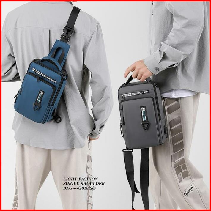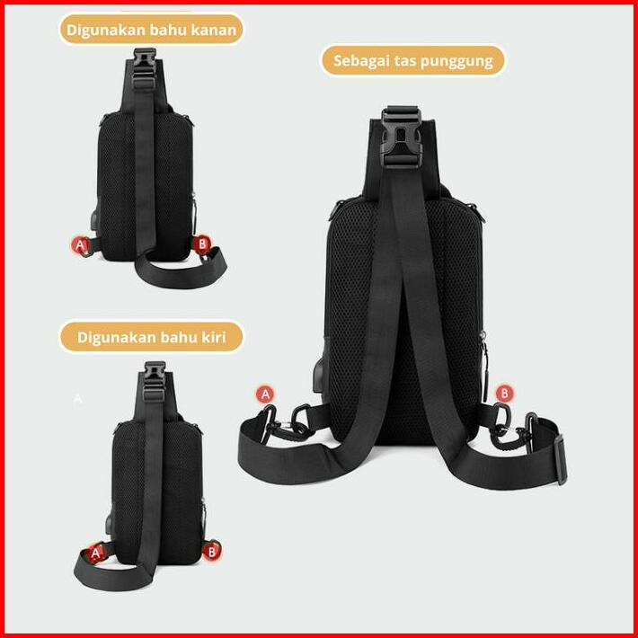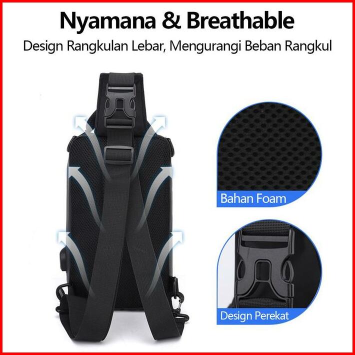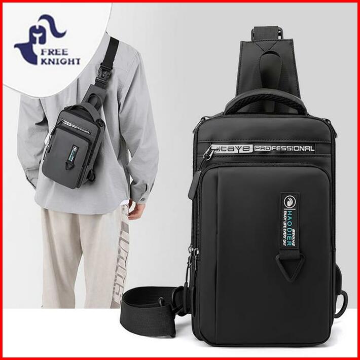 Freeknight Tas Selempang Pria Usb Charger Slingbag Pria Trendy Dan Tahan Air Waist Bag Tas Gendong Cowok Keren Crossbody