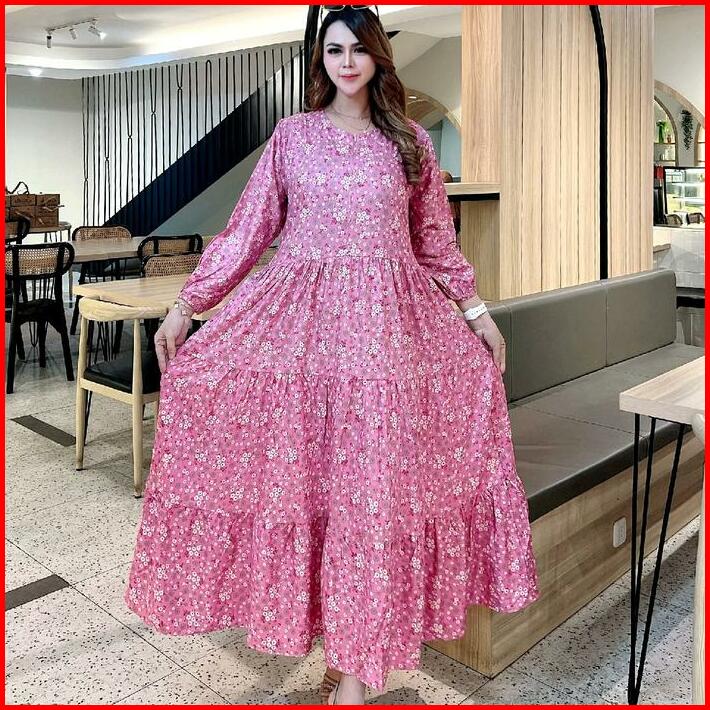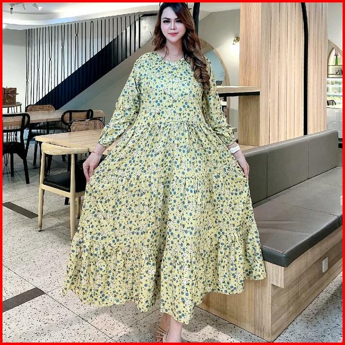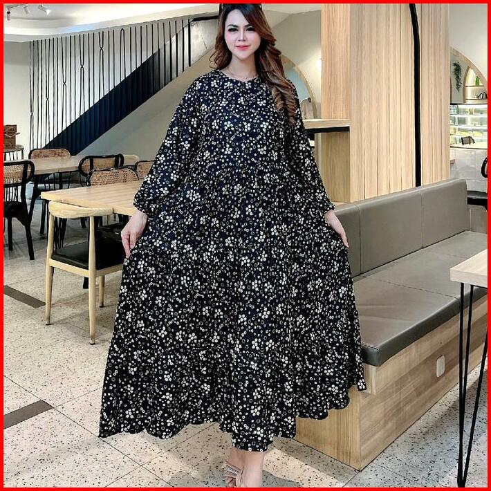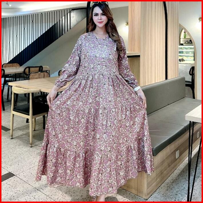 Dress Flower Baju Gamis Wanita Busui Friendly Bahan Rayon Premium Casual Panjang Midi Motif Bunga