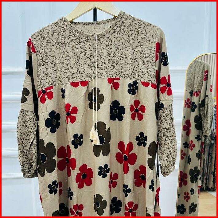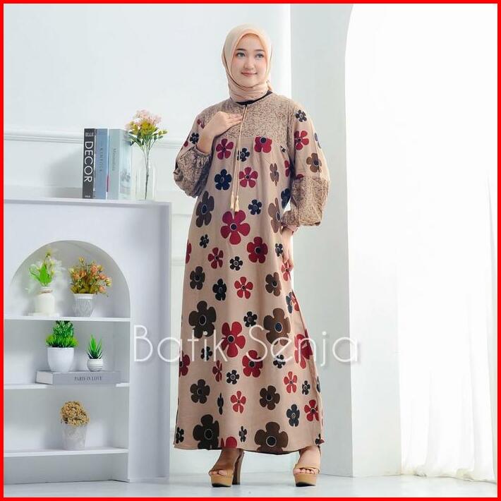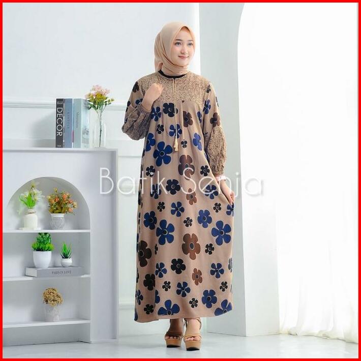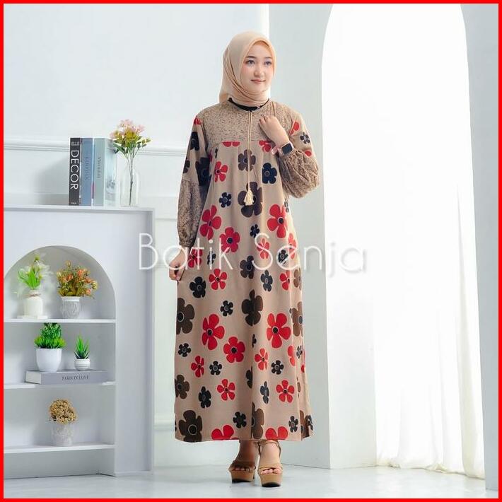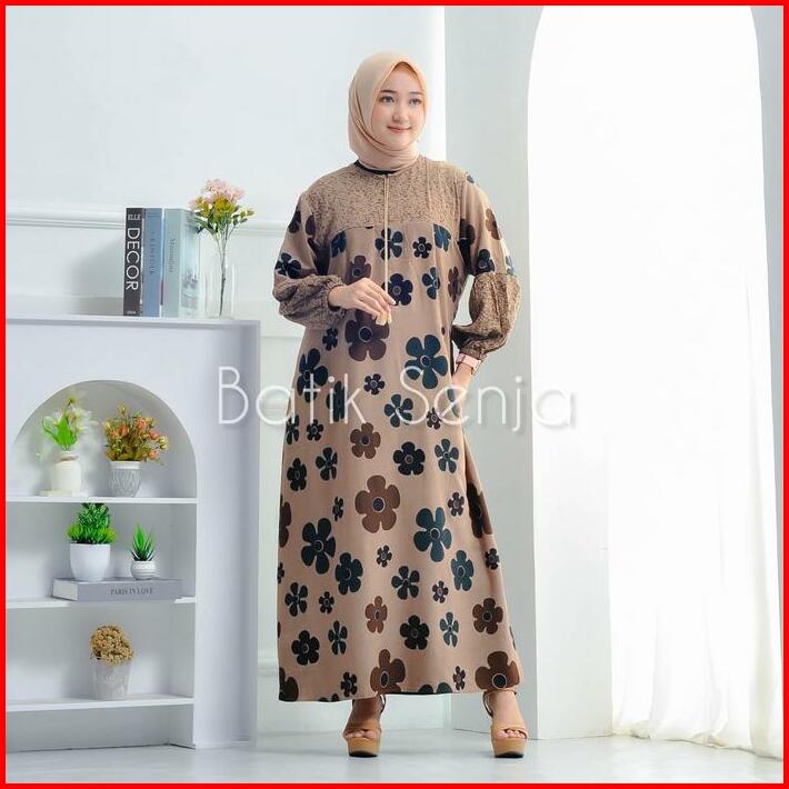 Bunga Dahlia Dress Rayon Premium Tebal Busui Fashion Wanita Muslim Nyaman Samping Motif Gamis Midi Katun